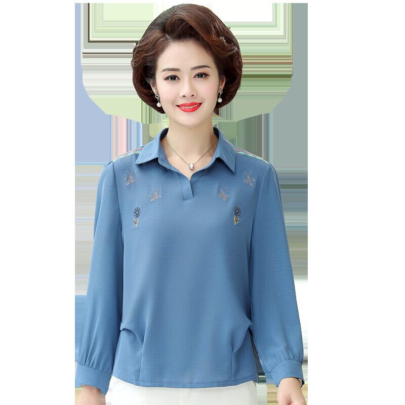 2020 new middle-aged mother spring clothes western style top clothes middle-aged and elderly women's clothes long-sleeved temperament bottoming shirt 40 years old 50 ロング スプリング 春物 nana20598281285 | modepoisson