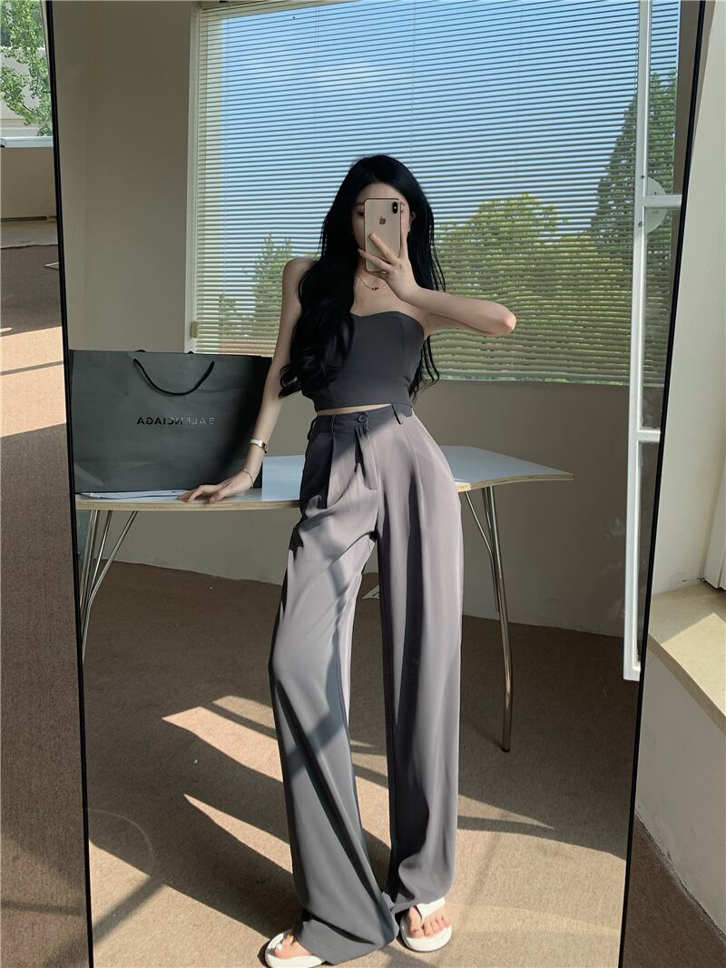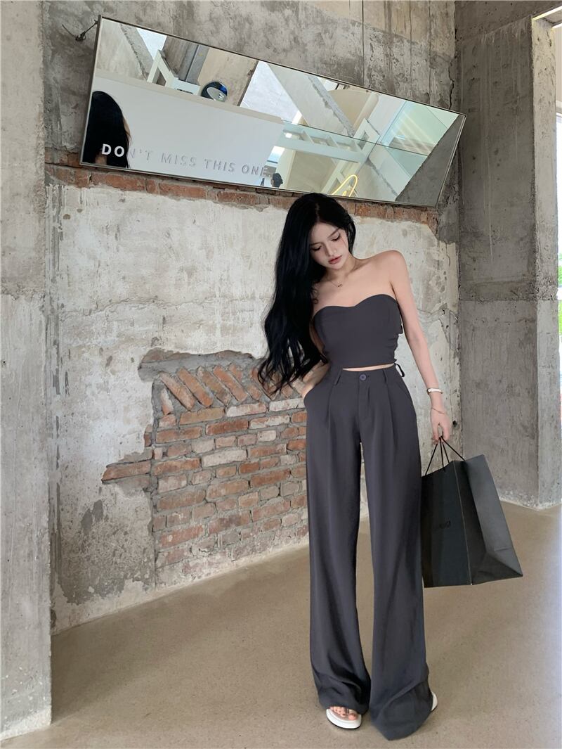 Summer dress with a complete set of pure lust style 2022 new tube top vest showing thin high waist suit pants women's clothing ハイウェスト サマー 夏物 ピュア nana24118976454 | modepoisson