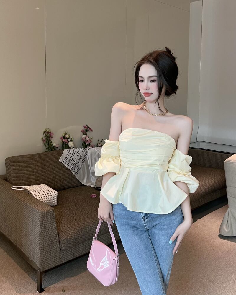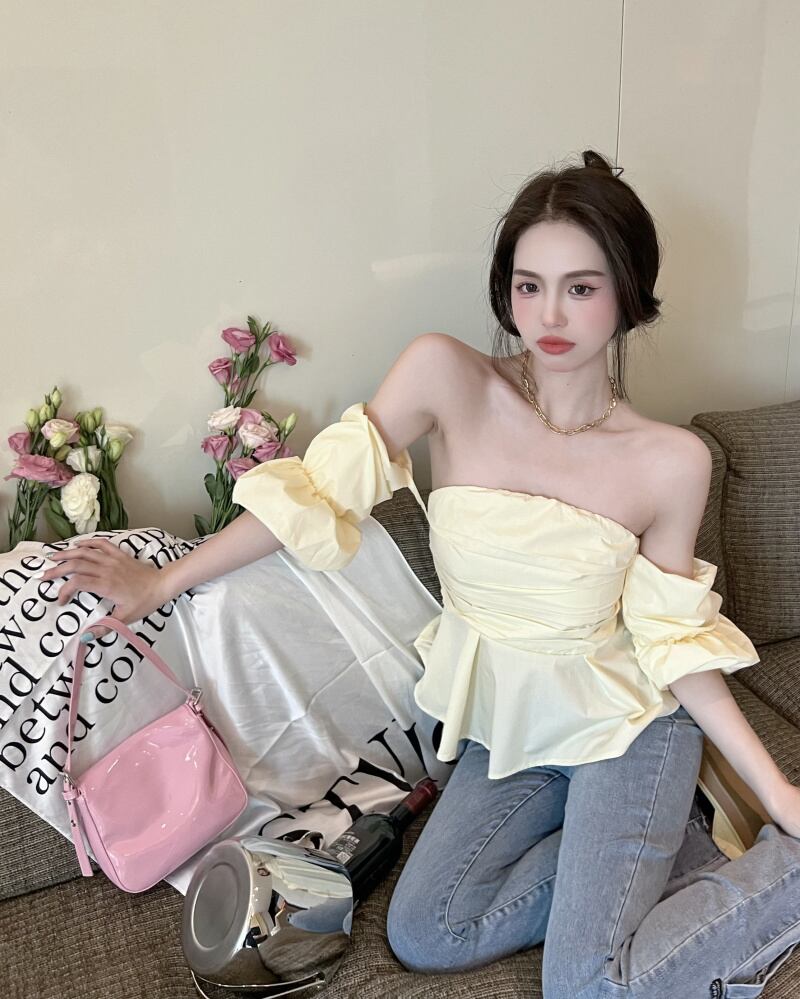 Short-sleeved shirt top summer 2022 new chic version of the puff sleeve one-shoulder tube top shirt women's trend サマー 夏物 nana49983969409 | modepoisson