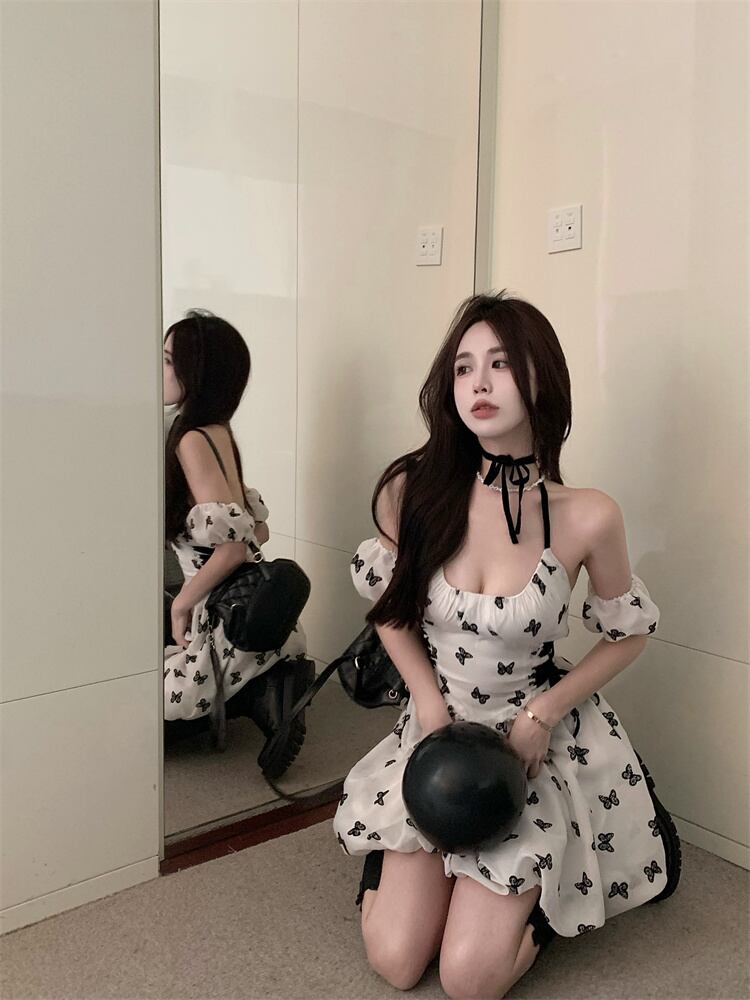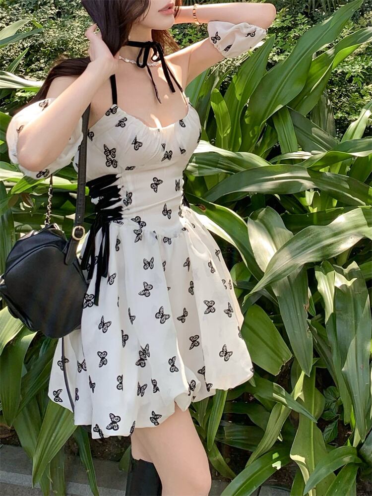 Butterfly floral suspenders fluffy flower bud skirt women's 2022 summer new chic stunning pure desire dress ふわふわ サマー 夏物 花柄 スカート ピュア フラワーデザイン nana98099783718 | modepoisson