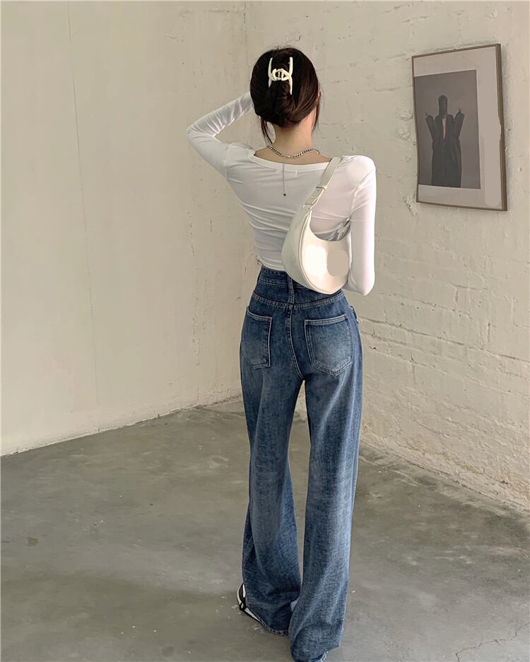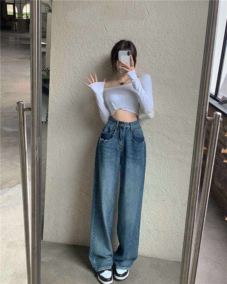 Loose drape slim jeans women's autumn and winter new design high waist wide leg straight mopping long pants ハイウェスト ロング オータム 秋物 ウィンター 冬物 スリム ワイドレッグ ワイドパンツ nana96982909574 | modepoisson
