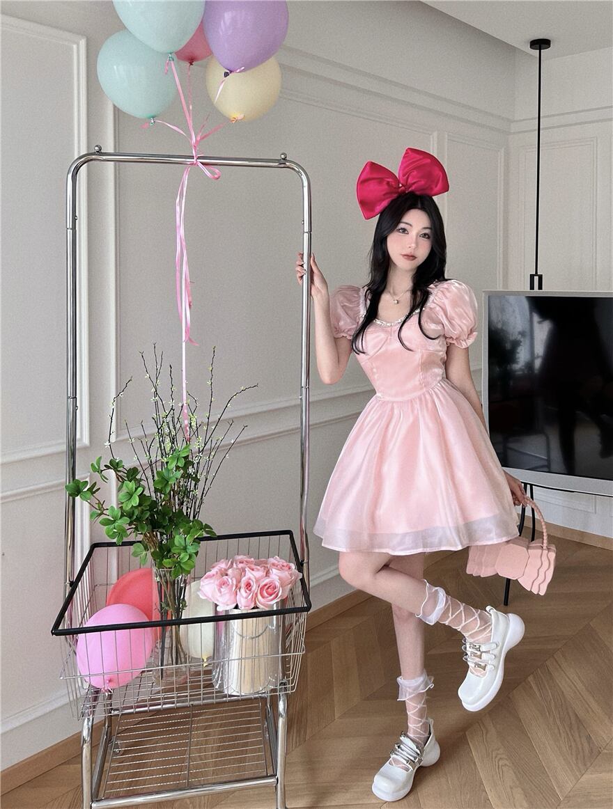 2022 summer new French first love milk sweet skirt square neck puff sleeves waist slim princess dress female 大人ガーリー スウィート キュート カジュアル サマー 夏物 スカート スリム スクウェア nana29520885787 | modepoisson