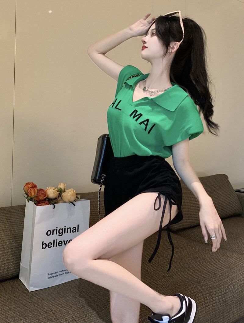 Sweet and spicy cool women's suit summer 2022 new knitted top high waist drawstring shorts Hong Kong style royal sister two-piece suit ハイウェスト 大人ガーリー スウィート キュート カジュアル サマー 夏物 ショーツ ブルマー nana78722655427 | modepoisson