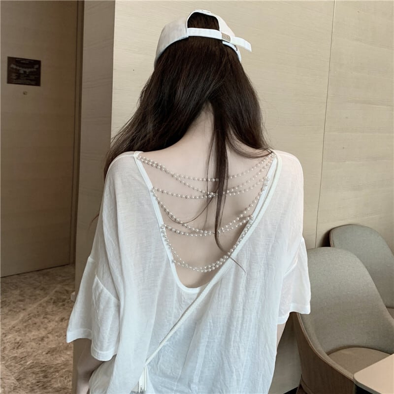 2022 summer new design, niche, chic, careful machine, hollow out, backless, sexy, sunscreen, t-shirt, top, women サマー 夏物 Tシャツ nana17175919110 | modepoisson