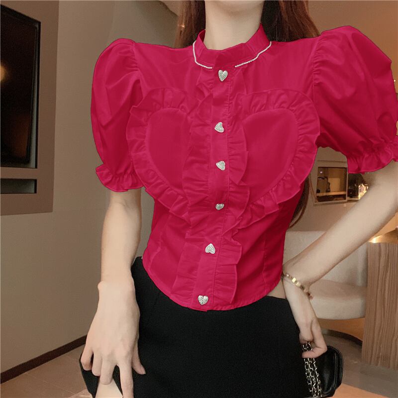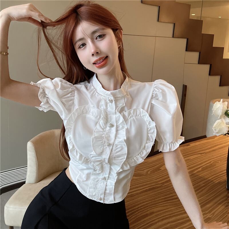 Ruffled love short shirt 2022 new summer cute slim slim and chic short-sleeved top ショート 大人ガーリー スウィート キュート カジュアル サマー 夏物 スリム nana51515066187 | modepoisson