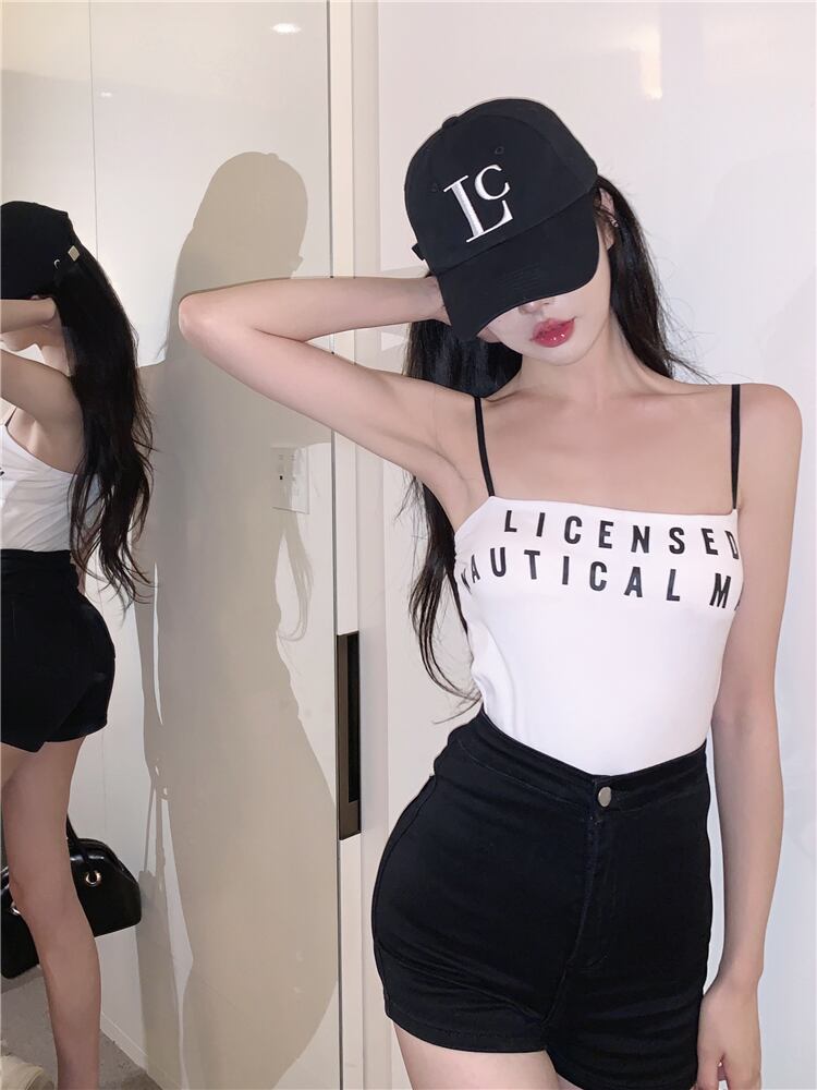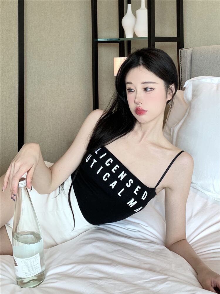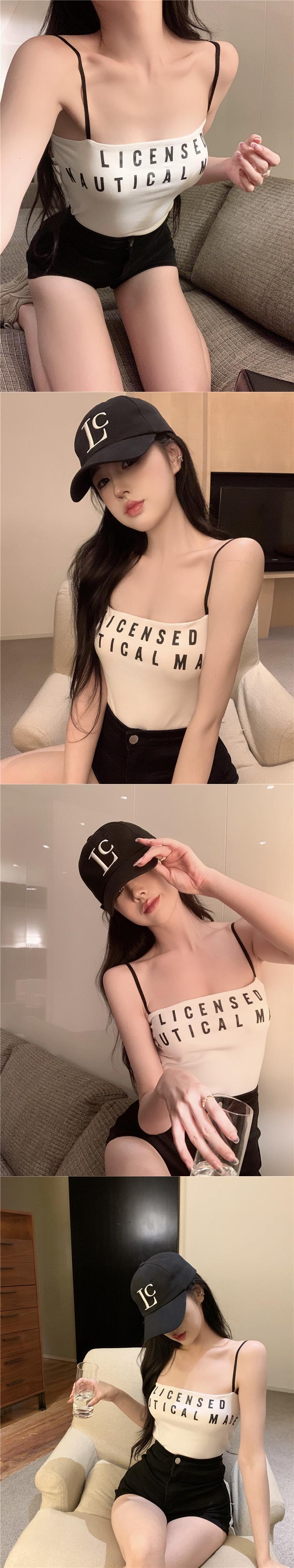 Hot tube top letter suspender female summer sweet and spicy style beautiful back slim fit and thin inside and outside wearing vest short top ショート 大人ガーリー スウィート キュート カジュアル サマー 夏物 スリム nana52982876772 | modepoisson