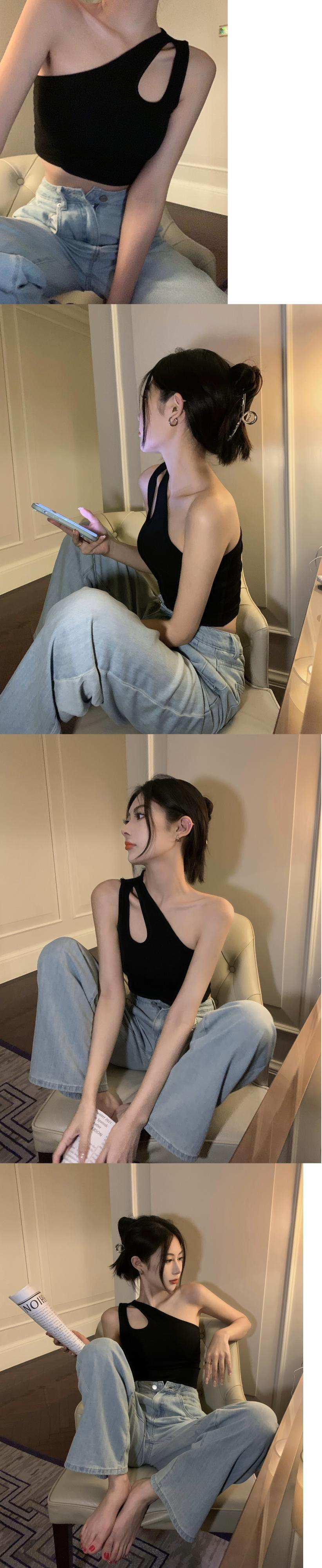 Beautiful back summer outer wear French niche short sexy sweet and spicy slanted shoulder straps chest pad vest inner top female ショート 大人ガーリー スウィート キュート カジュアル サマー 夏物 nana99346109561 | modepoisson