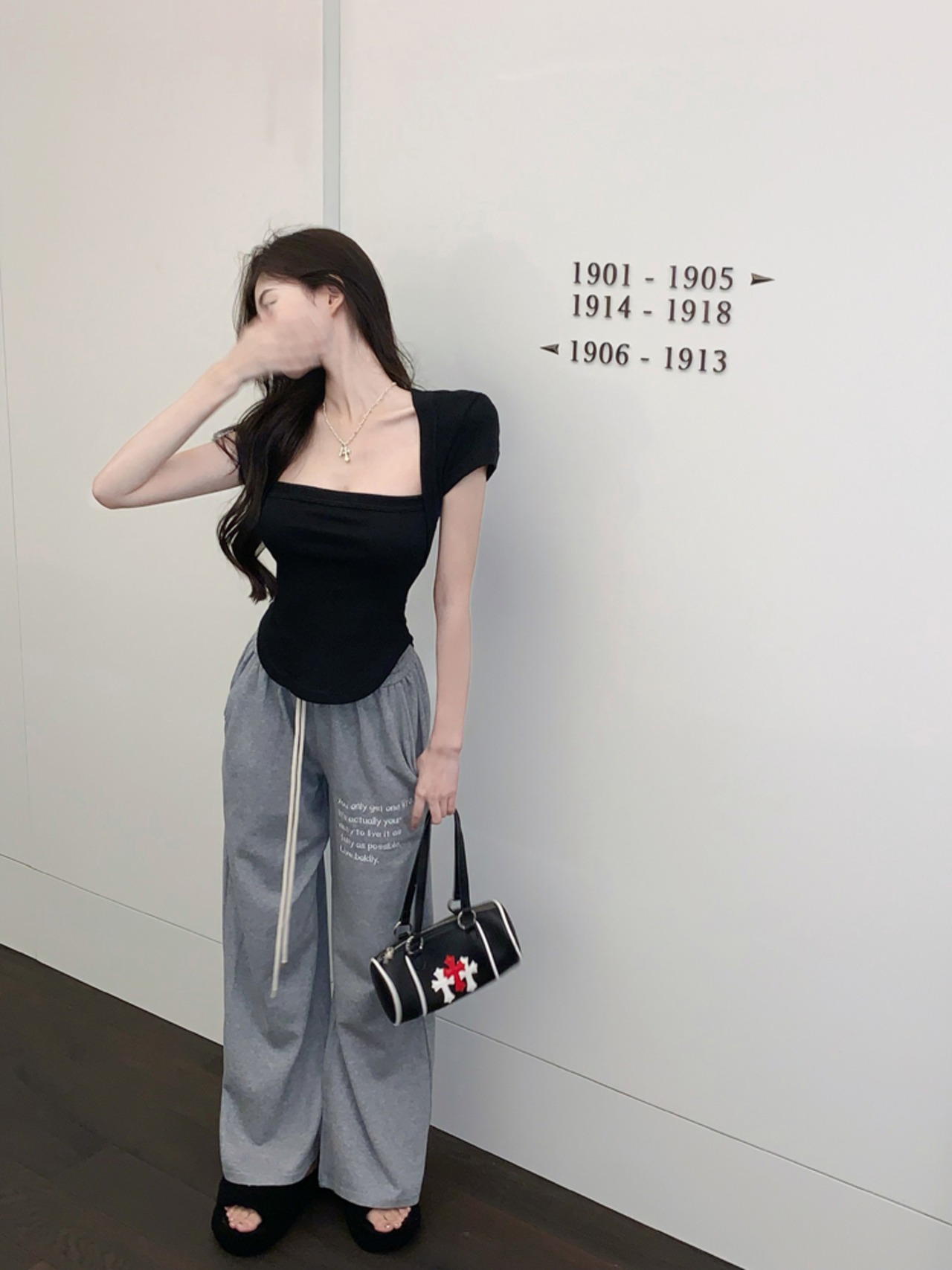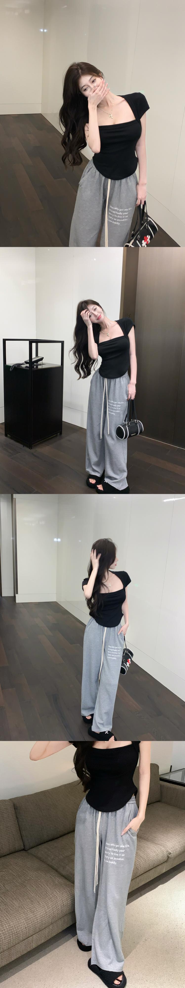 Royal sister Hong Kong style suit 2022 summer new sexy short-sleeved t-shirt casual wide-leg pants women's two-piece suit カジュアル サマー 夏物 Tシャツ nana38199494126 | modepoisson