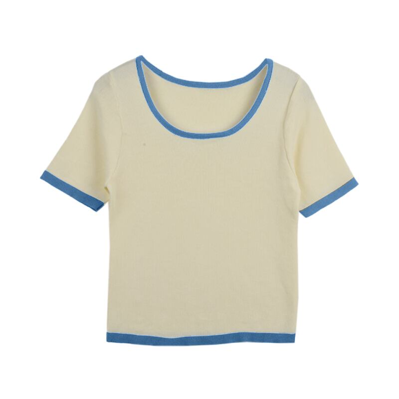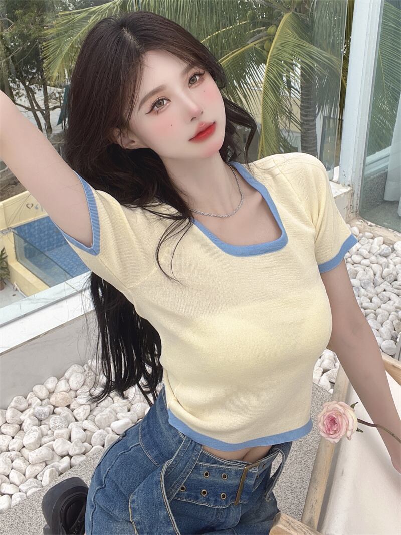 Short-sleeved t-shirt women's 2022 summer new design niche chic unique short knitted top ショート サマー 夏物 Tシャツ nana89032923789 | modepoisson