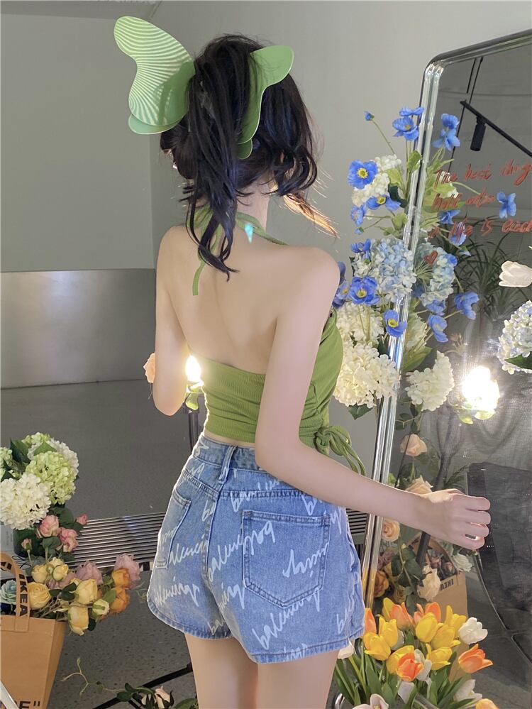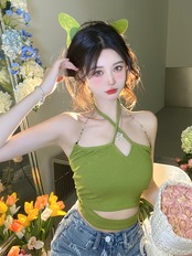 Summer French outerwear design sense niche pure desire halter camisole short tube top sweet and spicy top women ショート 大人ガーリー スウィート キュート カジュアル サマー 夏物 ピュア nana23280070497 | modepoisson