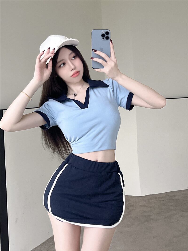 2022 summer new polo collar short-sleeved t-shirt women's unique design sense niche self-cultivation chic top サマー 夏物 Tシャツ nana68568763053 | modepoisson