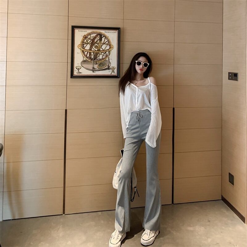 2022 summer new design niche high-waisted drape sports pants micro-flare wide-leg casual pants women's clothing カジュアル サマー 夏物 nana40127784348 | modepoisson