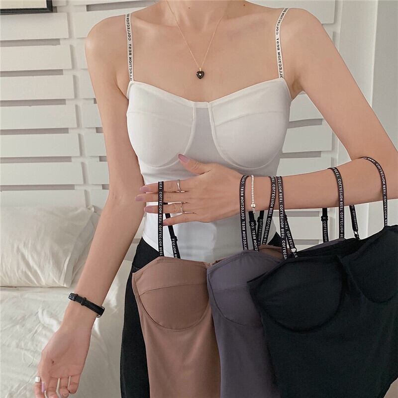 Letter small camisole female latex coaster ice silk summer chic sweet and spicy bottoming beautiful back underwear outer wear top 大人ガーリー スウィート キュート カジュアル サマー 夏物 シルク nana2610130913 | modepoisson
