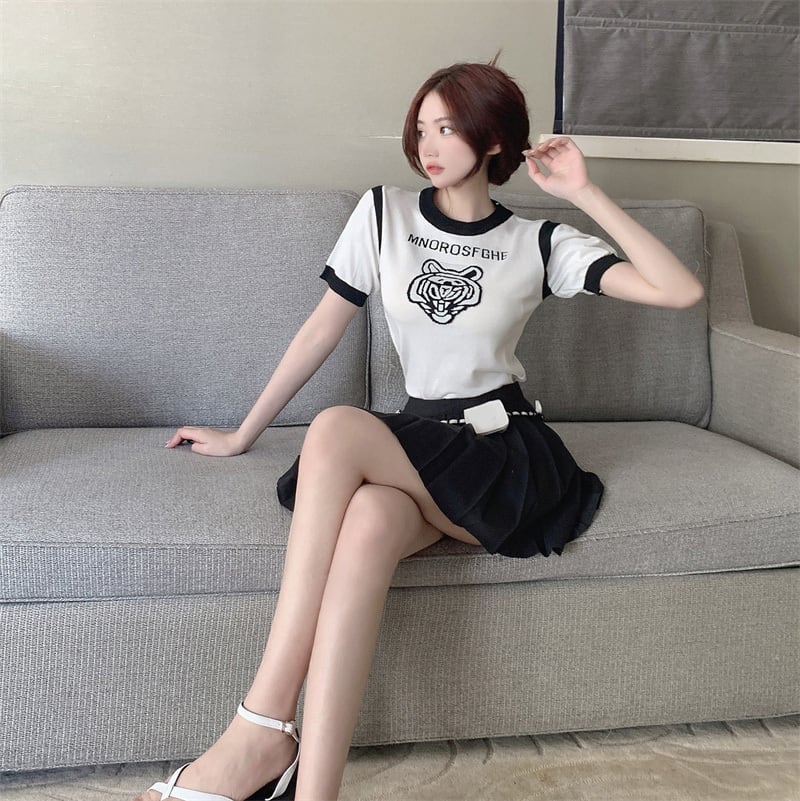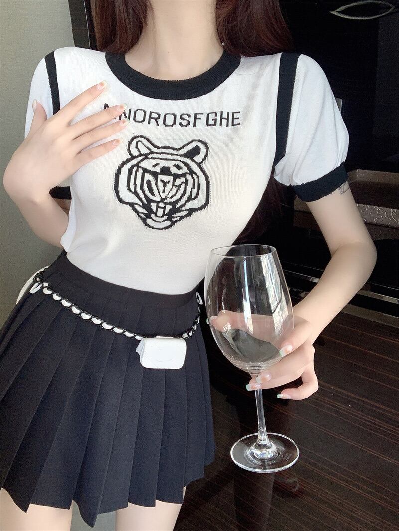 Short-sleeved knitted t-shirt women's 2022 summer new tight-fitting design niche slim fit chic top trend サマー 夏物 スリム Tシャツ nana15586803375 | modepoisson