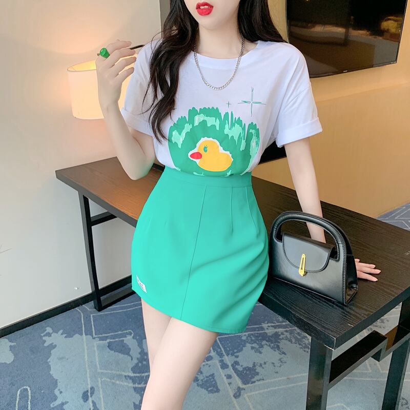 Royal sister fried street temperament two-piece suit 2022 summer new fashion short-sleeved t-shirt slim skirt women ストリート サマー 夏物 スカート スリム Tシャツ nana97507857302 | modepoisson
