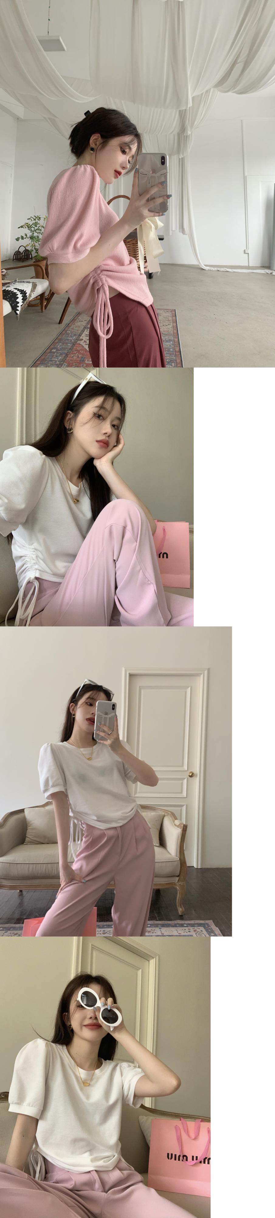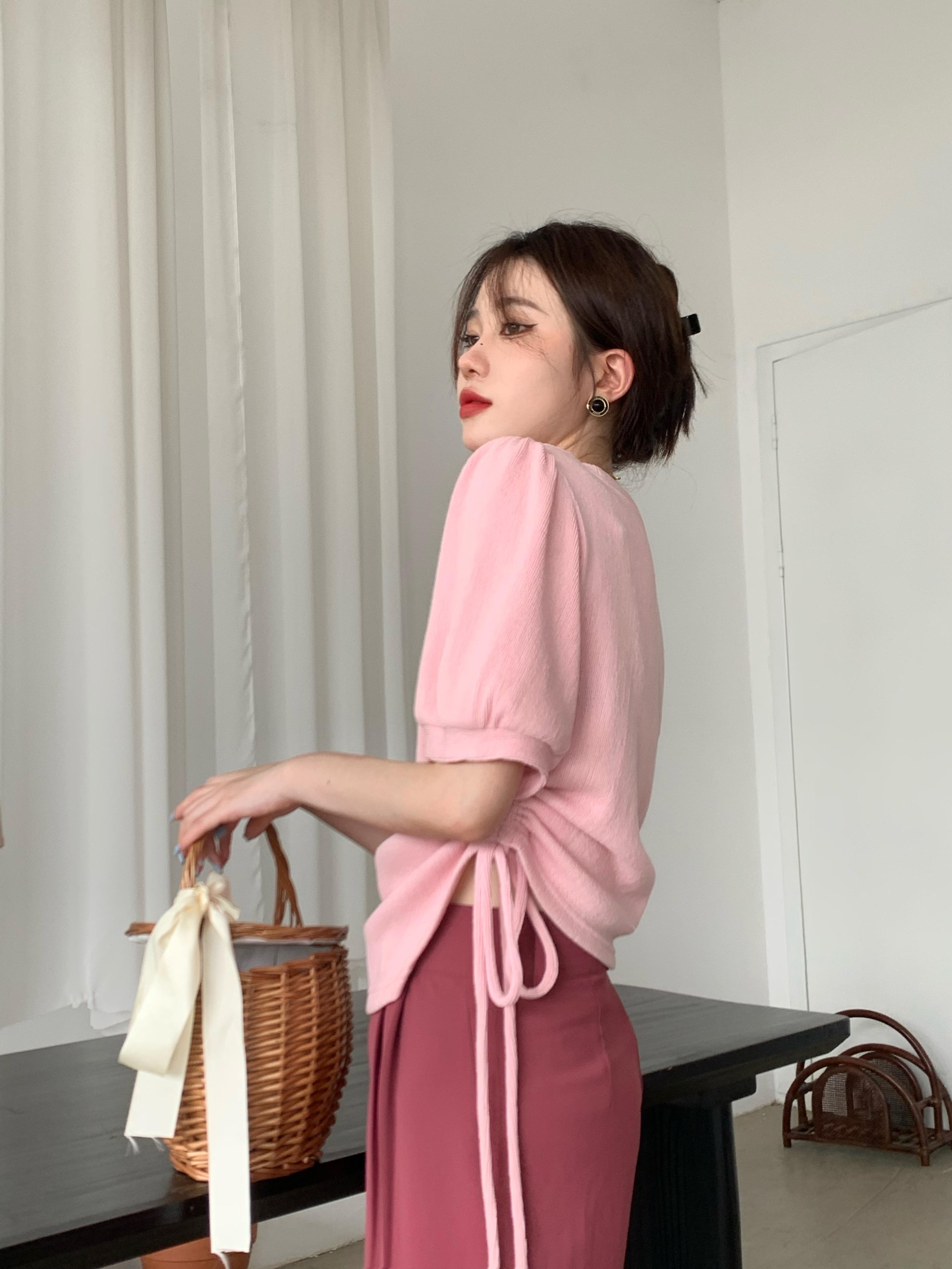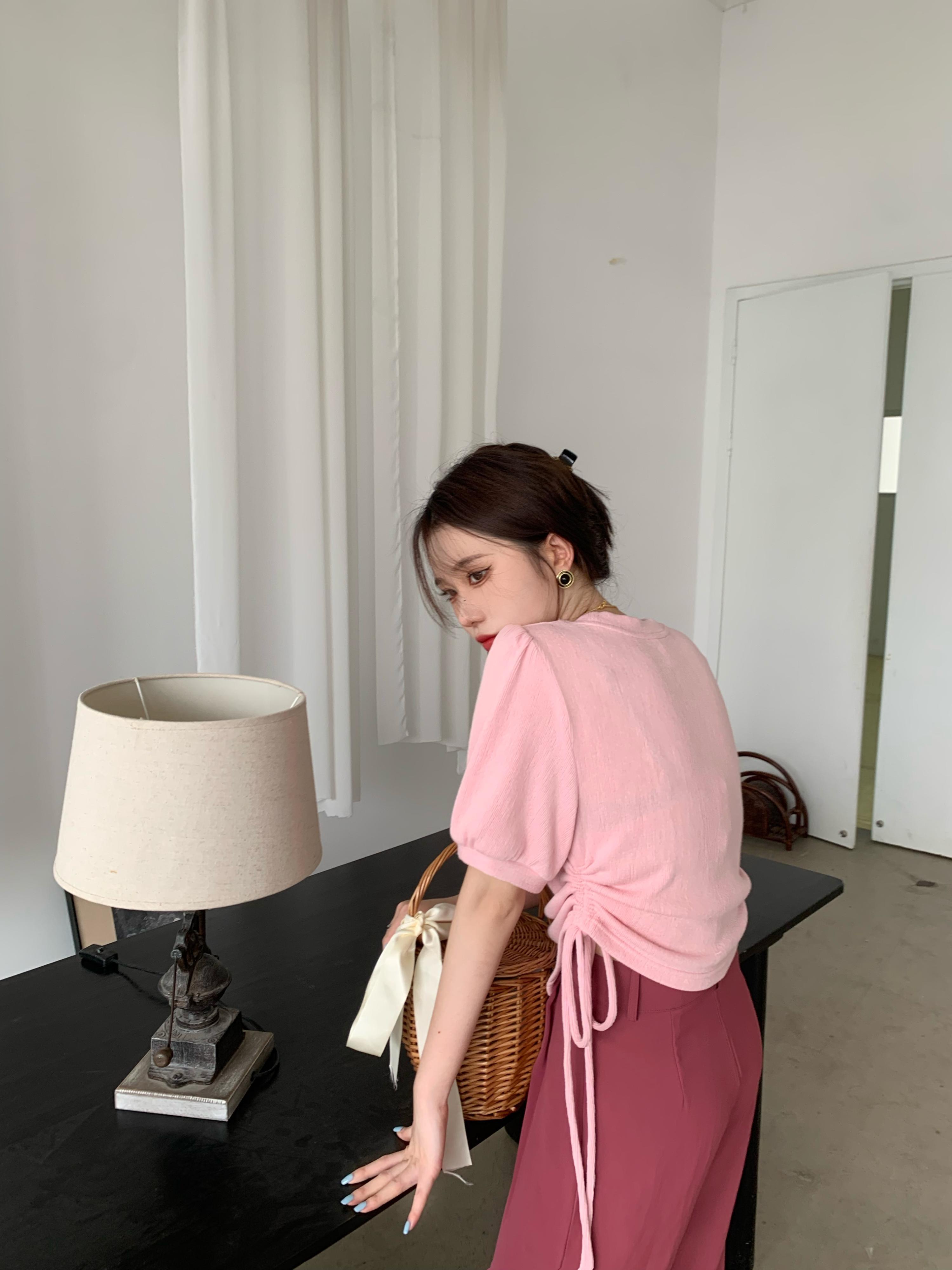Drawstring design sense niche bubble short-sleeved t-shirt women's 2022 summer new chic short small shirt top trend ショート サマー 夏物 Tシャツ nana98580732632 | modepoisson