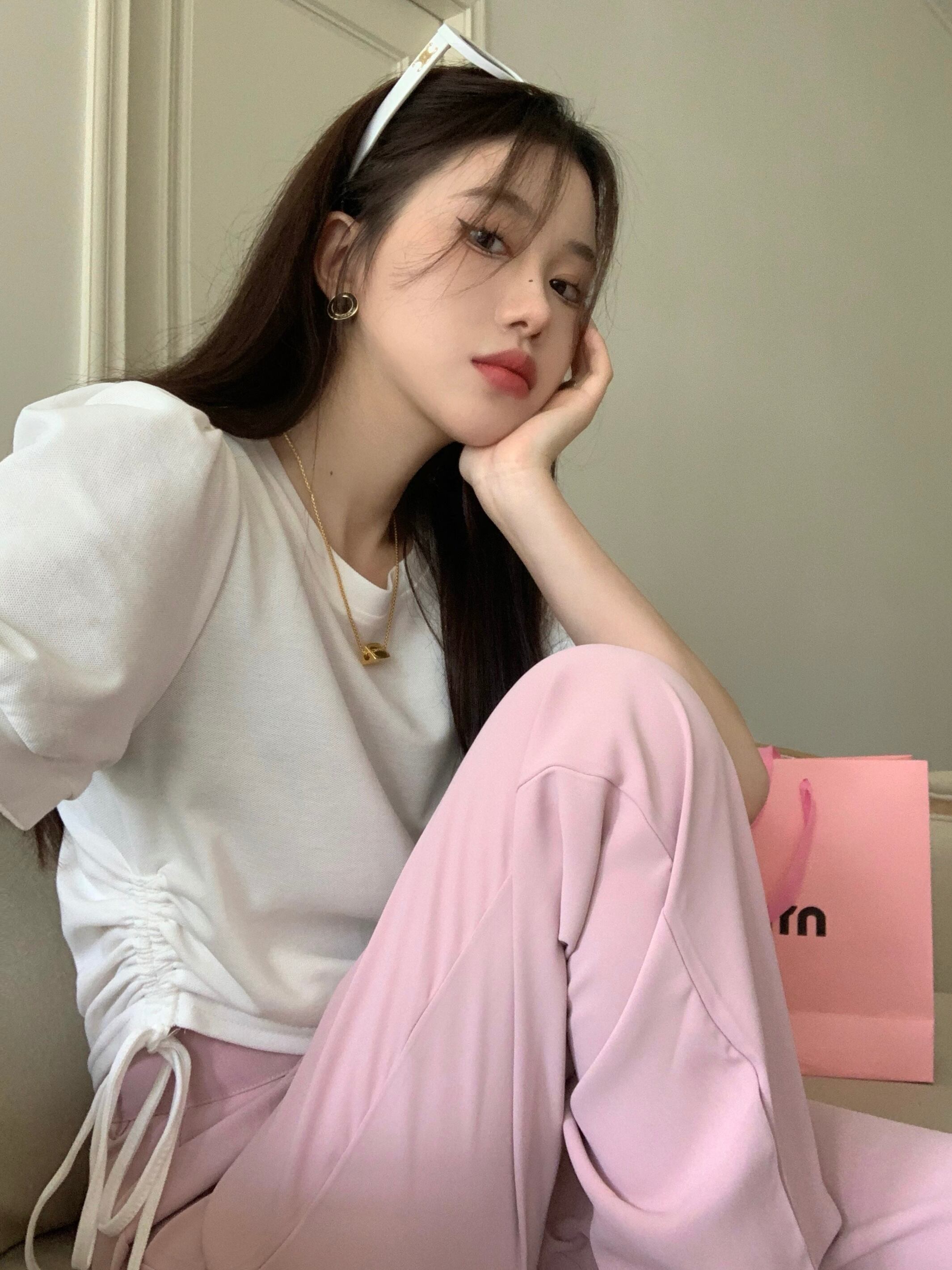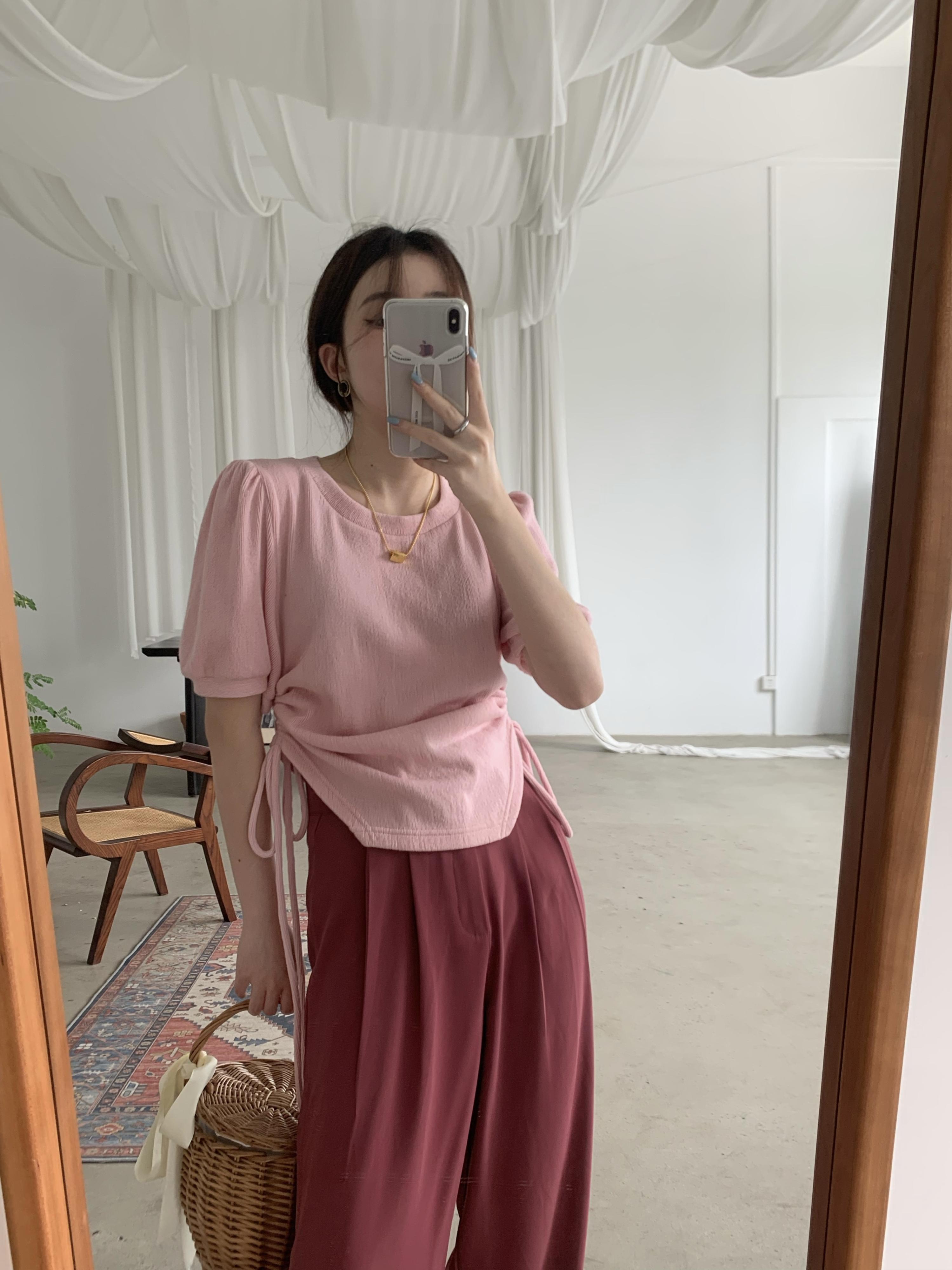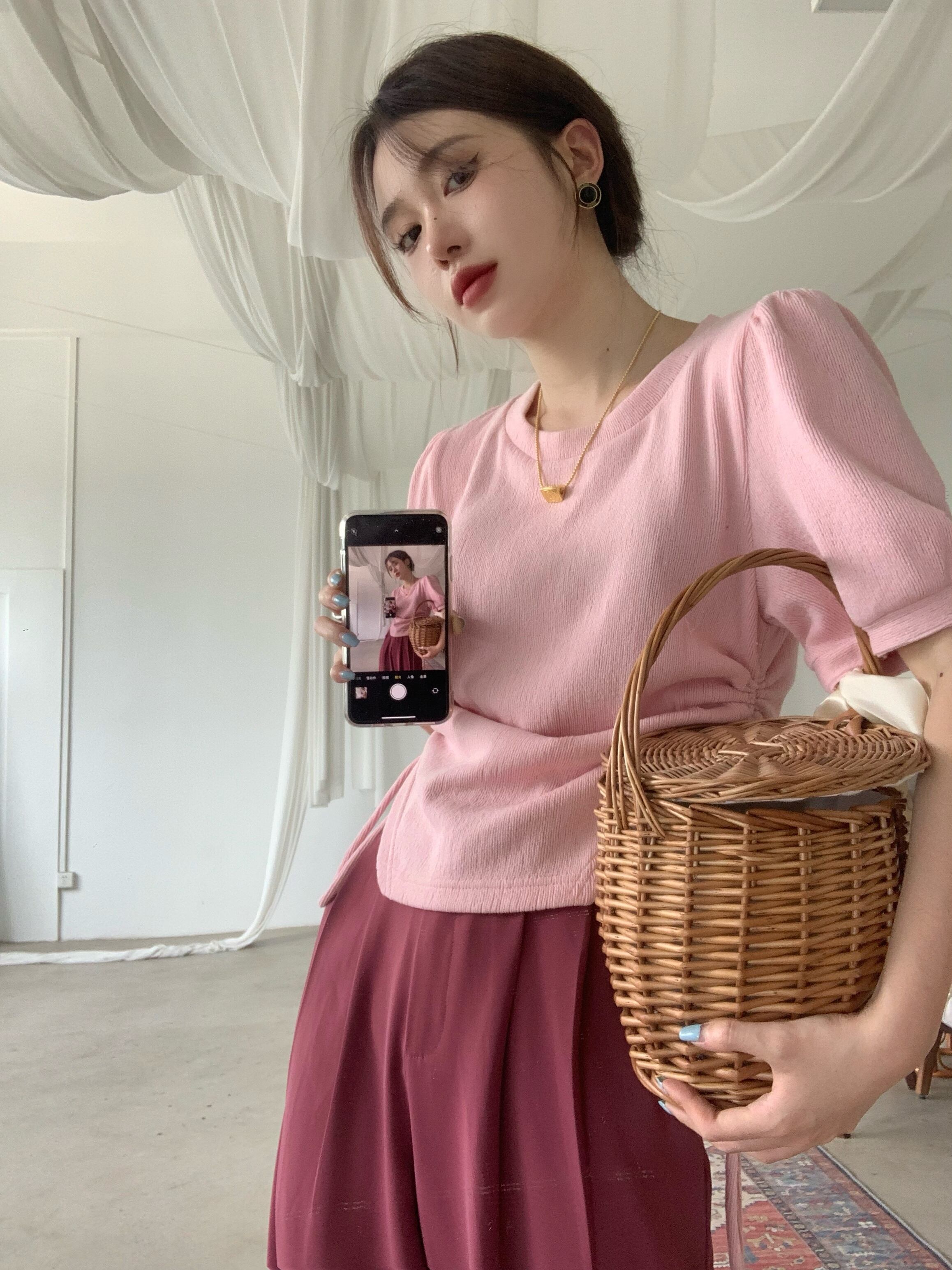 Drawstring design sense niche bubble short-sleeved t-shirt women's 2022 summer new chic short small shirt top trend ショート サマー 夏物 Tシャツ nana98580732632 | modepoisson