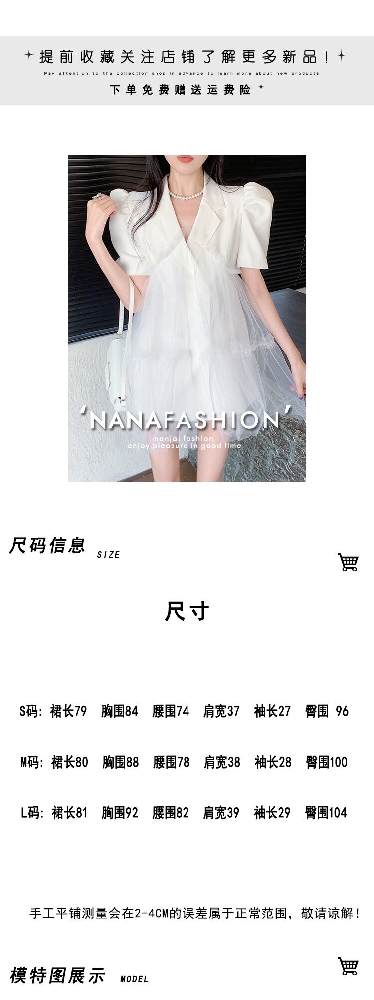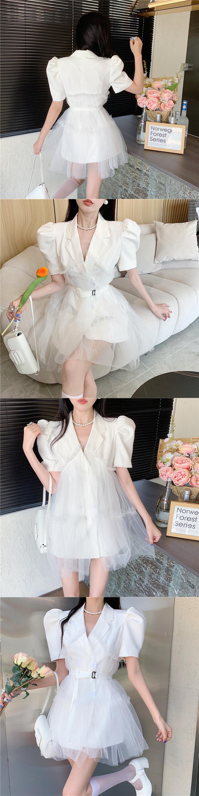 Goddess fan suit dress high-end 2022 summer new temperament puff sleeves waist slim mesh skirt サマー 夏物 メッシュ スカート スリム nana464268599 | modepoisson