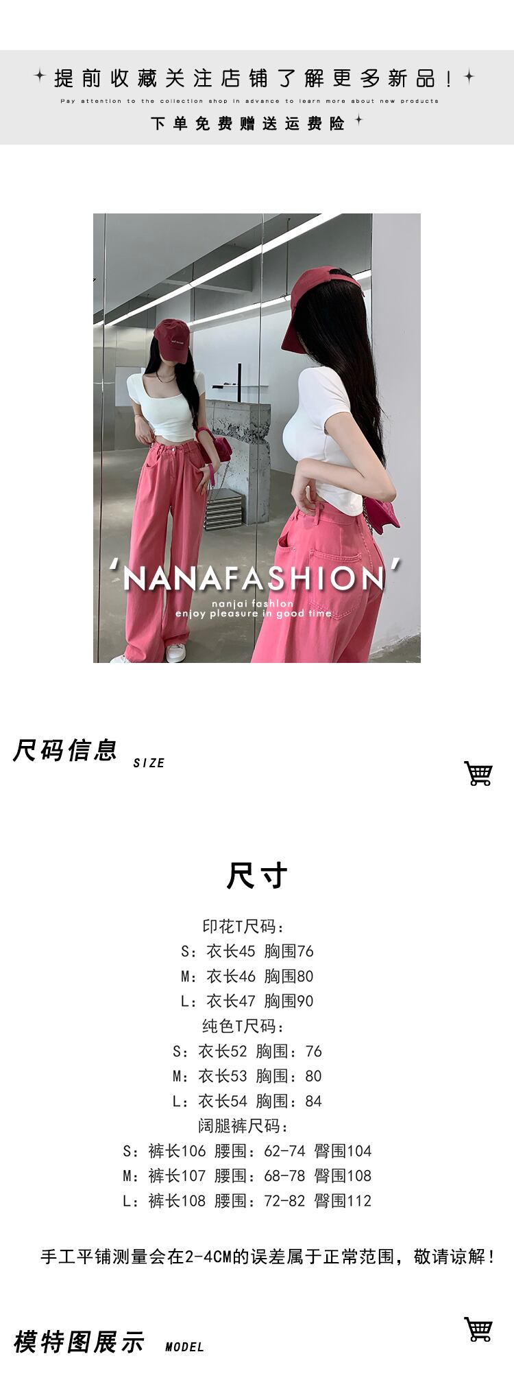 Net red goddess fan two-piece suit summer 2022 new fashion white t-shirt high waist denim wide leg pants ハイウェスト ホワイト レッド サマー 夏物 ワイドレッグ ワイドパンツ Tシャツ nana73817506624 | modepoisson