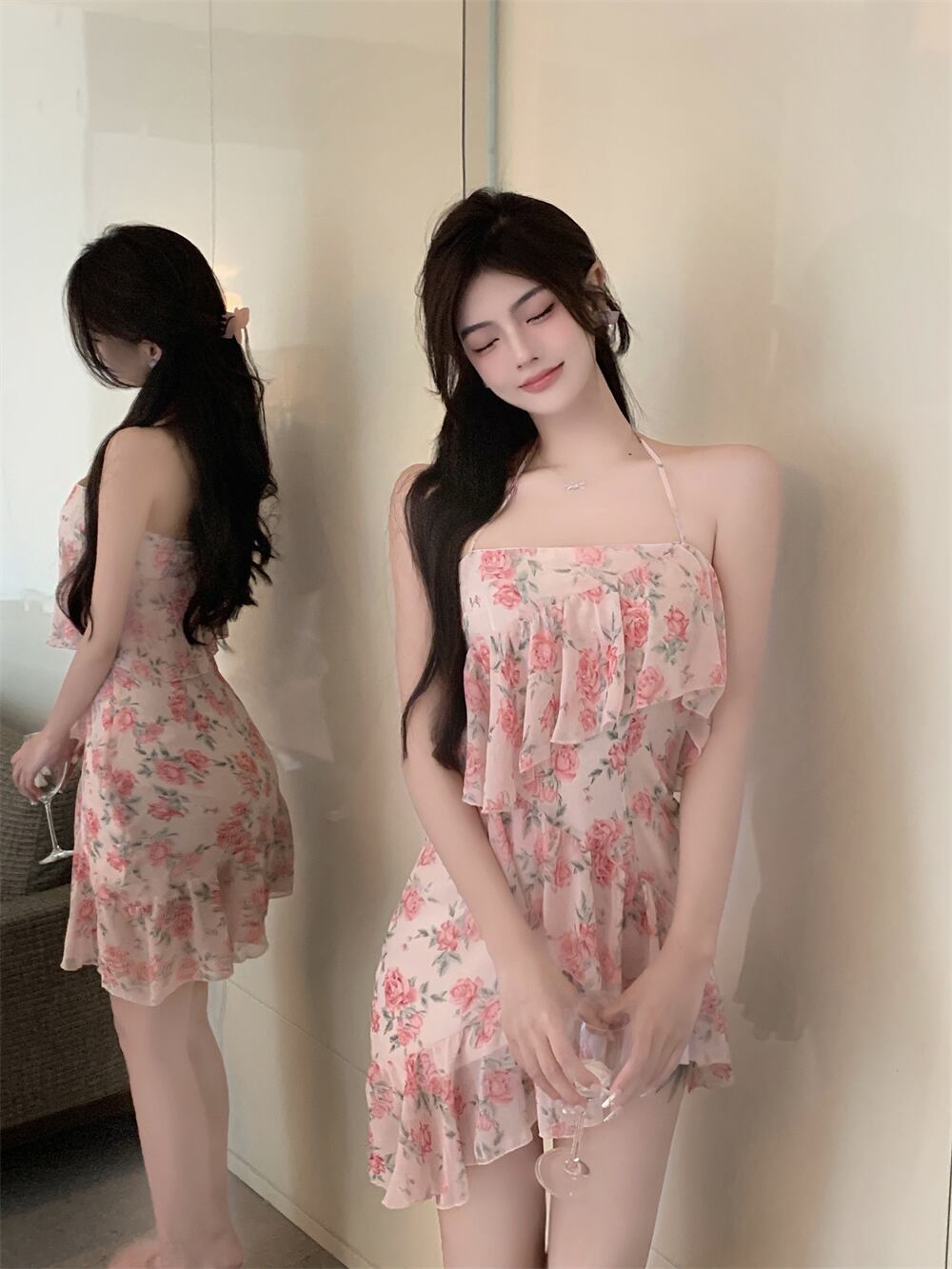 Stunning skirt women's 2022 summer new French ladies temperament chiffon halter neck suspenders halter floral dress シフォン サマー 夏物 花柄 スカート nana65556561996 | modepoisson