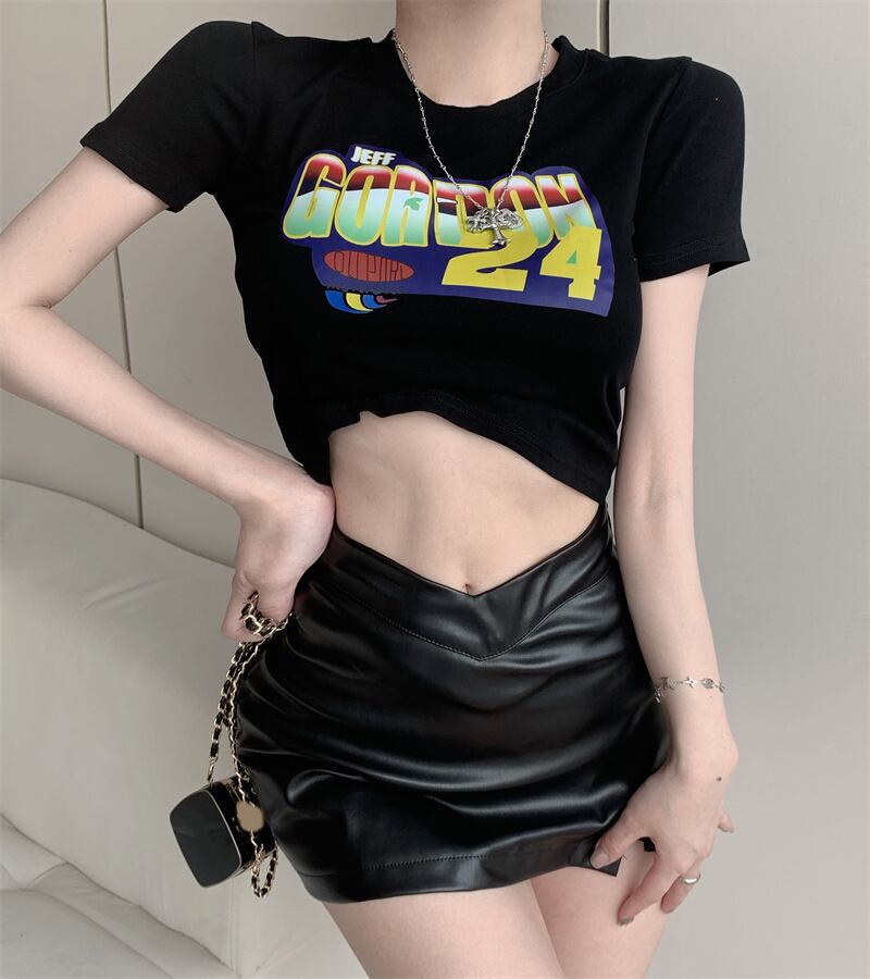 Short-sleeved t-shirt 2022 summer new design sense niche sweet and spicy thin short section chic unique top women ショート 大人ガーリー スウィート キュート カジュアル サマー 夏物 Tシャツ nana64785930307 | modepoisson