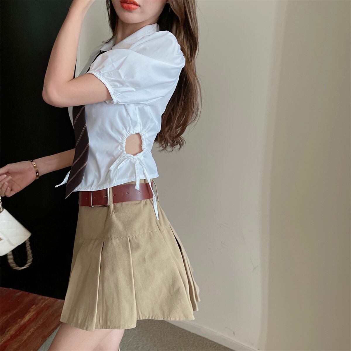Hot college style two-piece suit female 2022 summer new royal sister fried street shirt high waist a-line skirt ハイウェスト ストリート サマー 夏物 スカート Aライン nana53102757578 | modepoisson