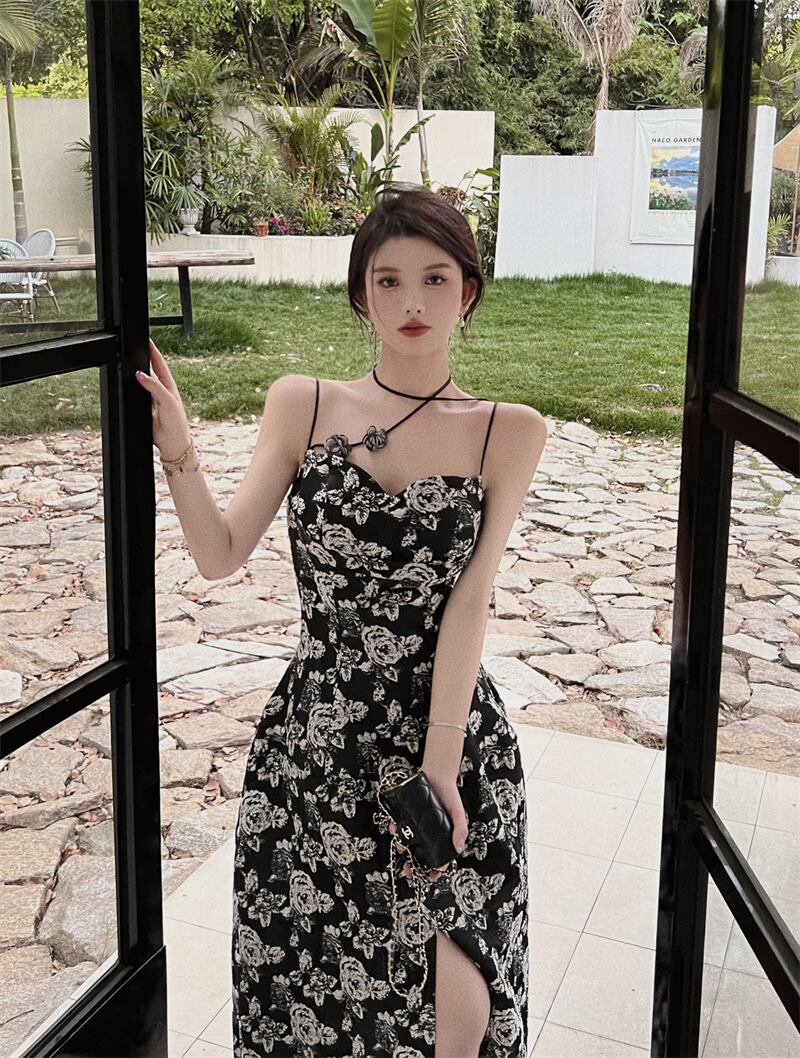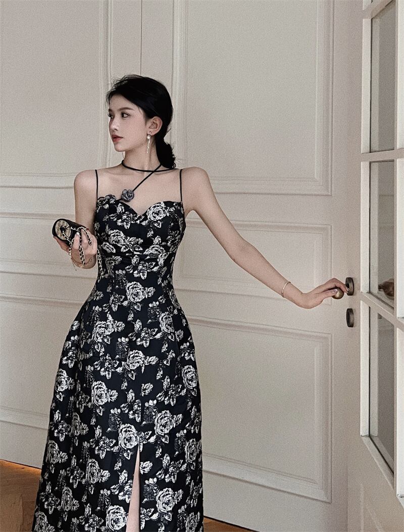 French Hepburn style little black skirt 2022 summer new high-end royal sister temperament suspender long dress female ロング ブラック サマー 夏物 スカート nana88577886547 | modepoisson