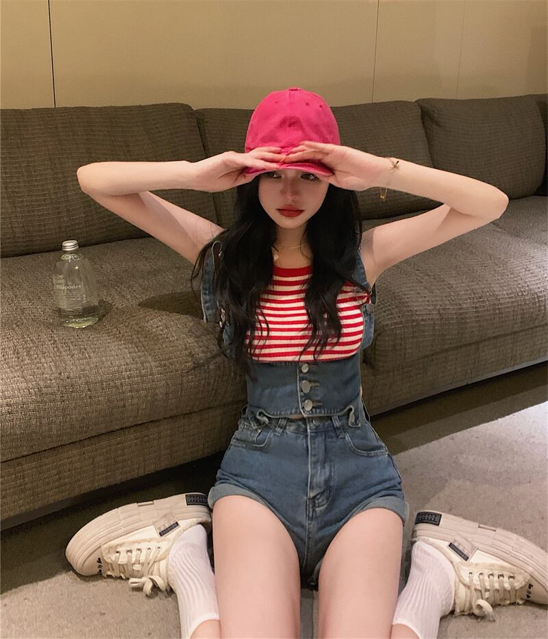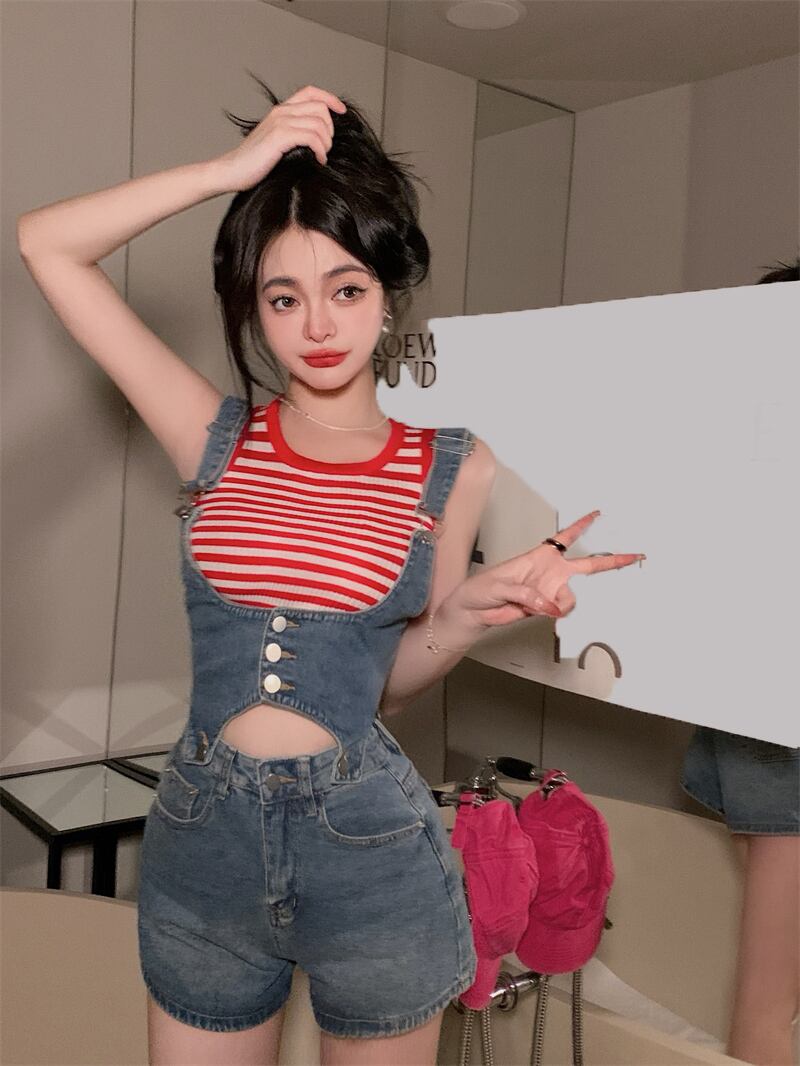2022 age-reducing women's suit summer new fashion suspenders denim straps wide-leg shorts small two-piece suit サマー 夏物 ショーツ ブルマー nana54426873931 | modepoisson