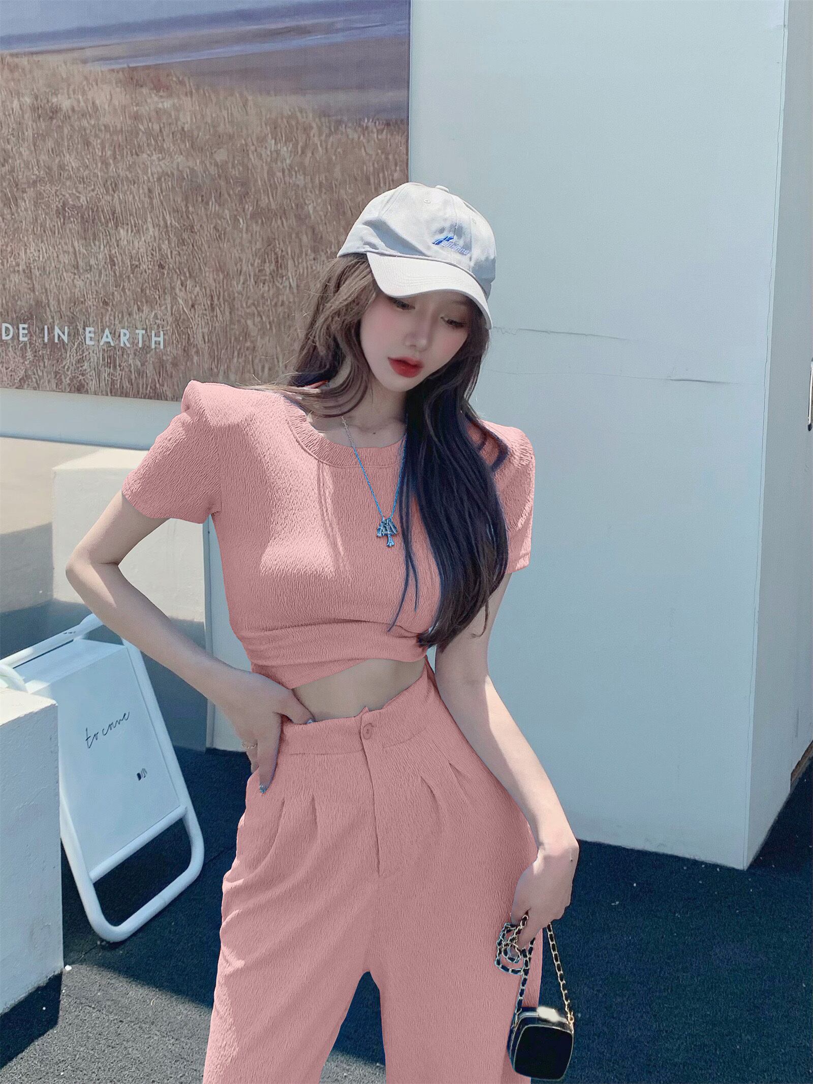 Sweet and spicy salt style two-piece suit 2022 summer new fashion temperament short-sleeved t-shirt casual wide-leg pants women カジュアル 大人ガーリー スウィート キュート サマー 夏物 Tシャツ nana1749223261 | modepoisson