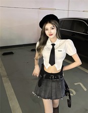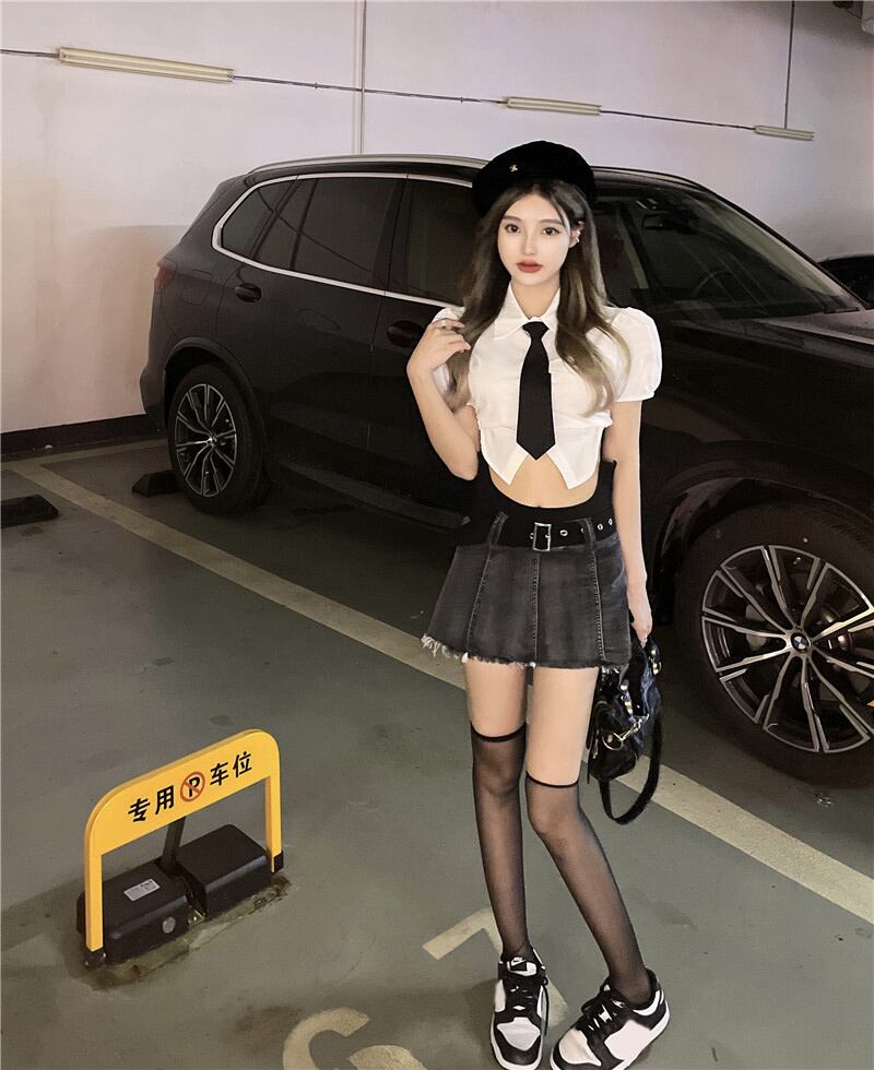 Summer jk unim suit 2022 new thin pure desire shirt top high waist denim skirt women's two-piece suit ハイウェスト サマー 夏物 スカート ピュア nana69113506192 | modepoisson