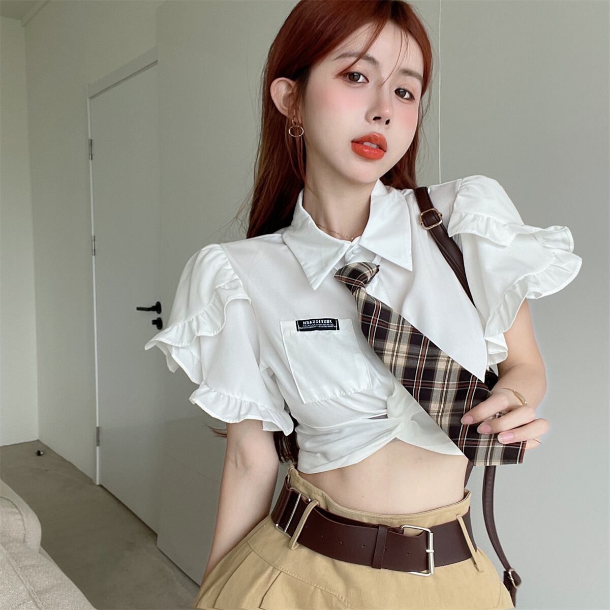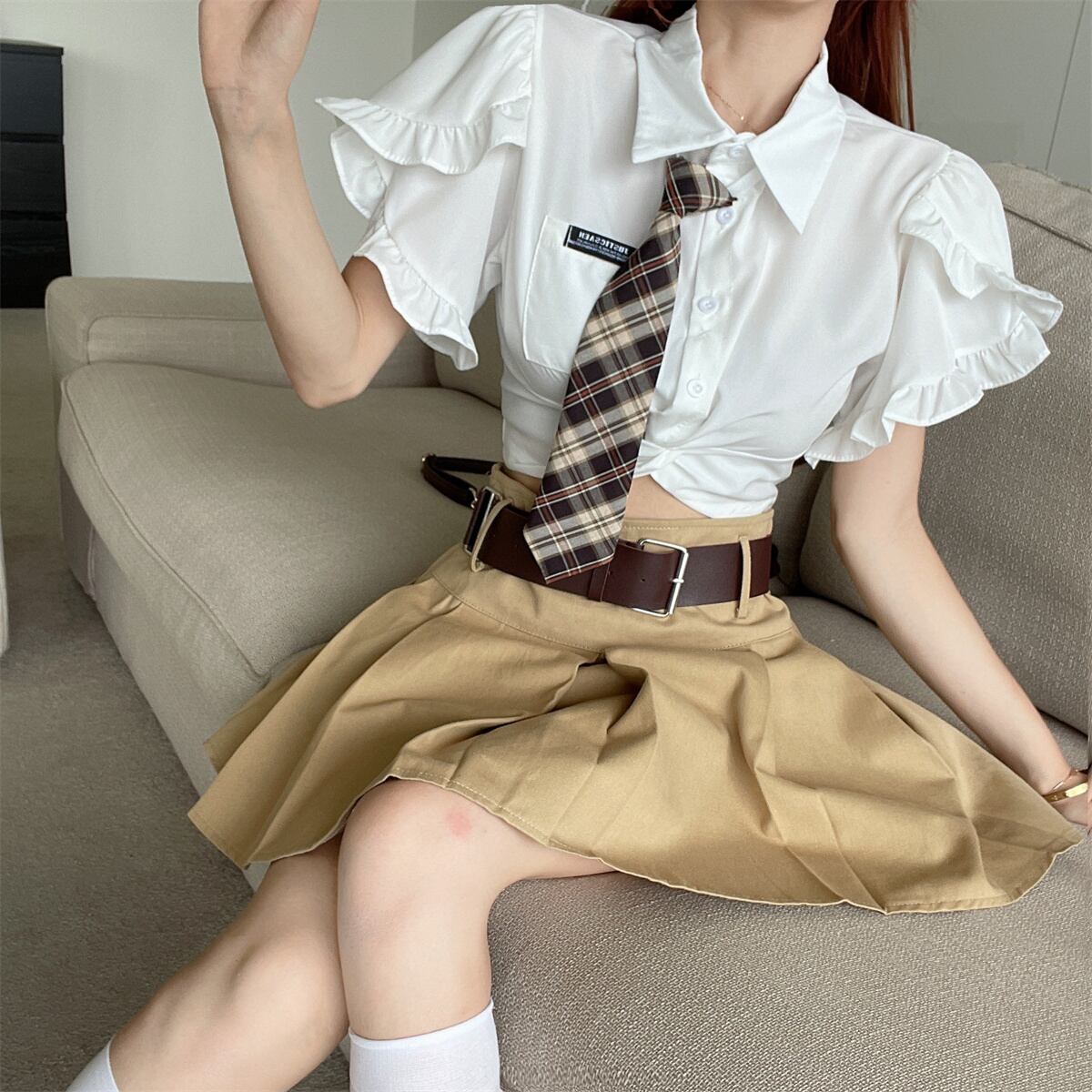 Hot suit 2022 summer new college style short-sleeved tie shirt high-waisted slim pleated skirt two-piece female プリーツ サマー 夏物 スカート スリム nana49997217125 | modepoisson