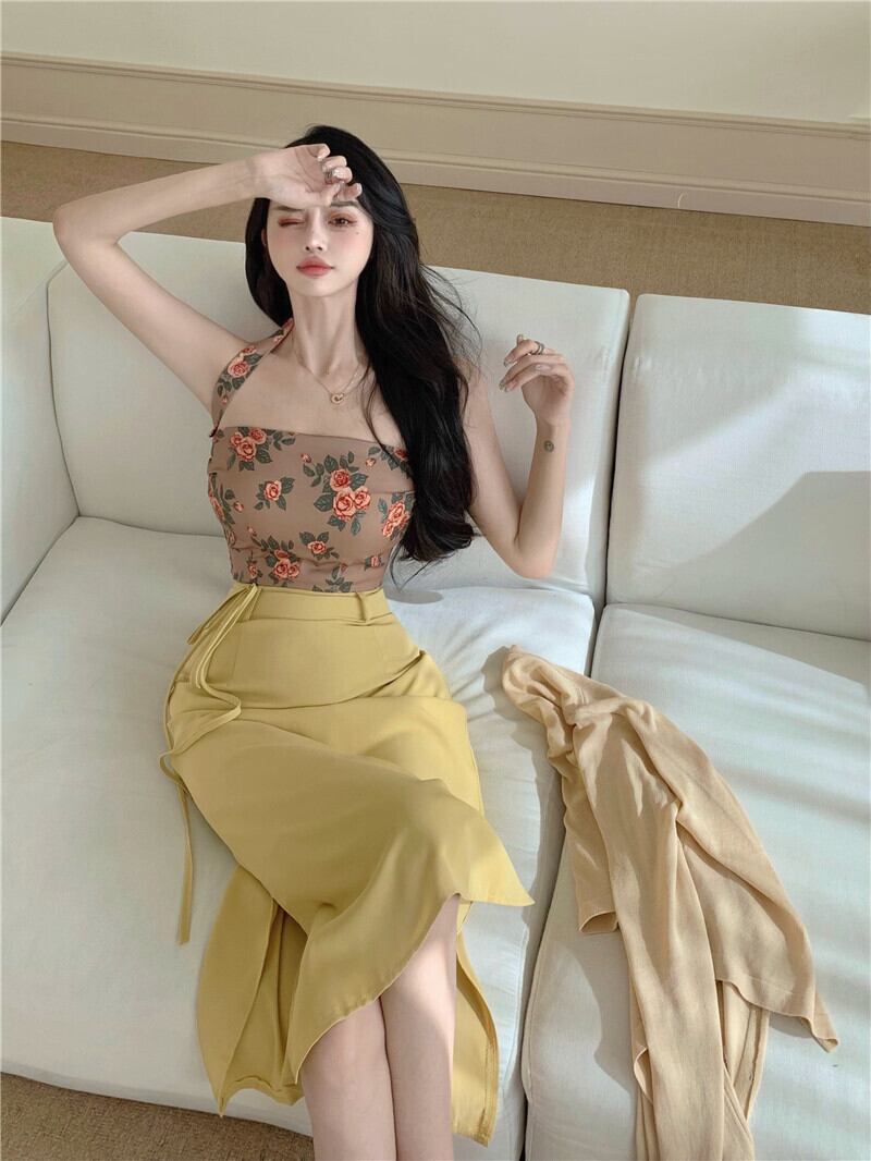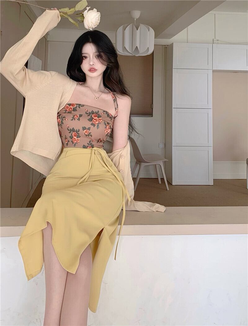 Suit skirt 2022 summer new French temperament floral suspender cardigan top skirt female royal sister three-piece suit カーディガン サマー 夏物 花柄 スカート nana23603743697 | modepoisson