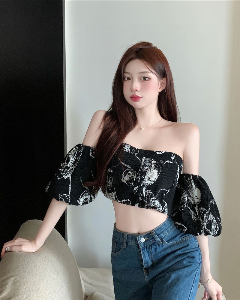 sense top summer 2022 new French niche temperament short-sleeved one-shoulder off-the-shoulder shirt women's clothing サマー 夏物 nana61351793522 | modepoisson