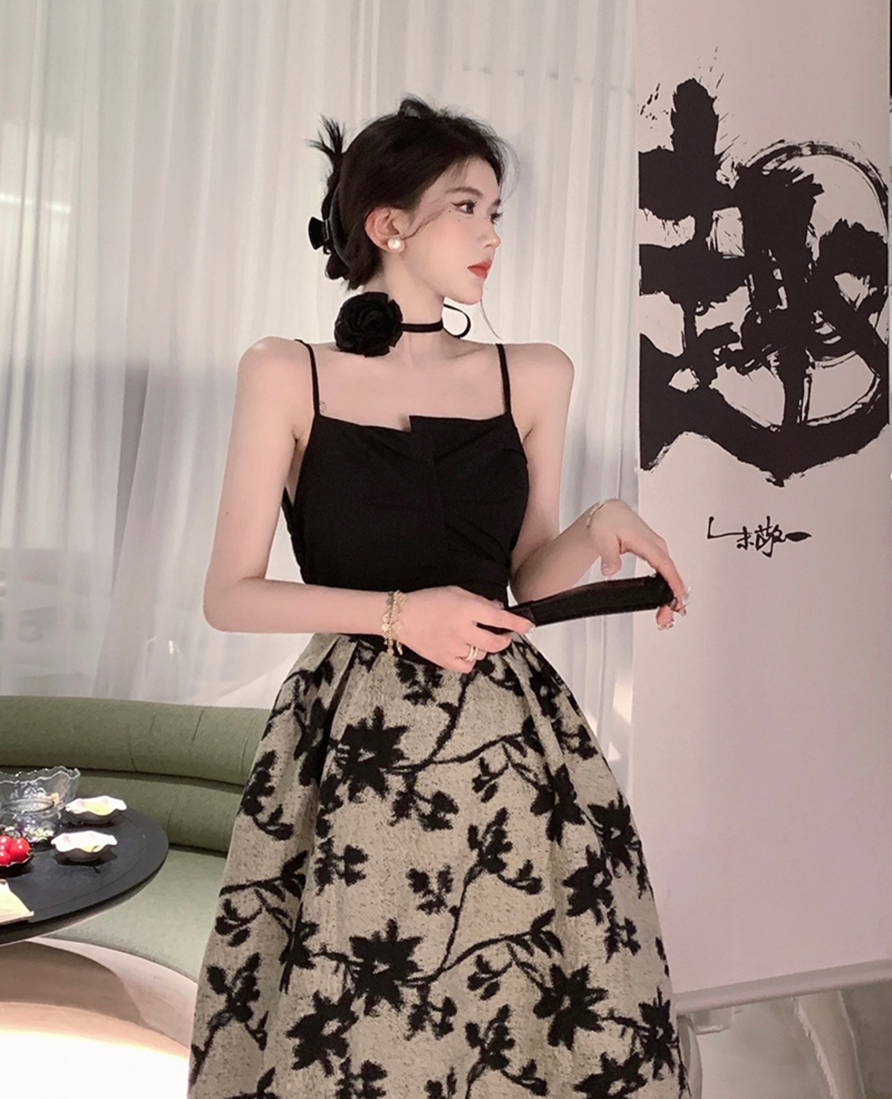 Sling Hepburn Dress Women's 2022 Summer Small Square Collar French Temperament Retro Long Skirt ロング レトロ サマー 夏物 スカート スクウェア nana61332598538 | modepoisson