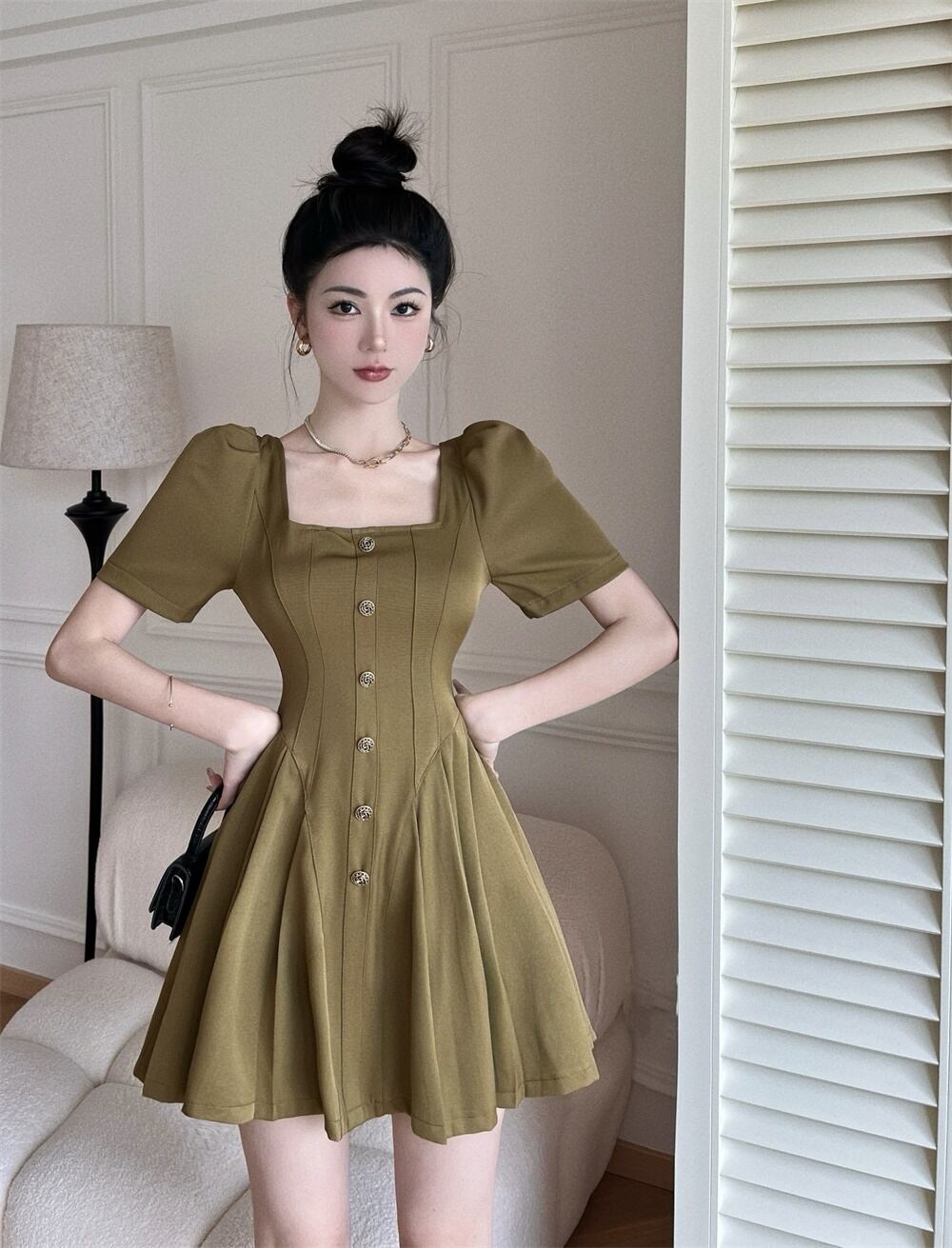 French light luxury style ladies royal sister fan skirt summer temperament design sense square neck puff sleeve waist dress female サマー 夏物 スカート スクウェア nana57723849152 | modepoisson