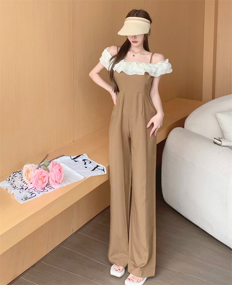 One-shoulder suspender suit jumpsuit summer high-end thin section loose and thin wide-leg jumpsuit suit women's clothing サマー 夏物 nana71538340097 | modepoisson