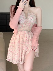 Sexy halter dress women's summer 2022 new fashion age-reducing Western style floral skirt sunscreen cardigan カーディガン サマー 夏物 花柄 スカート nana26836855414 | modepoisson