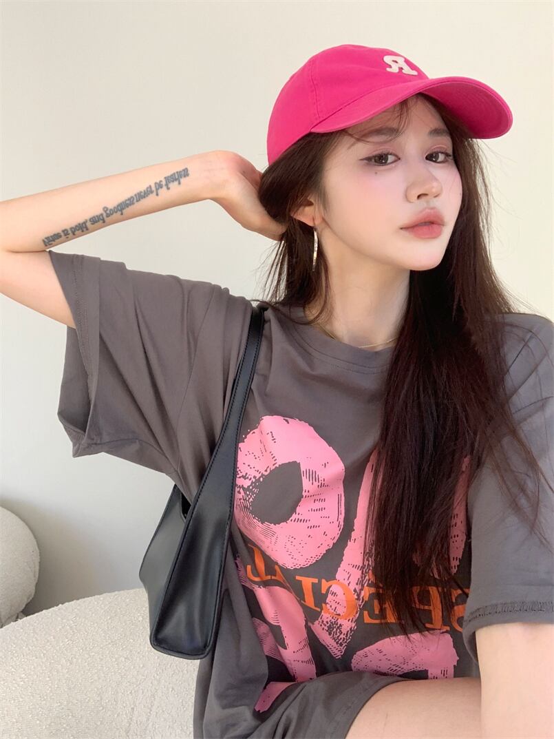 Short-sleeved t-shirt women's 2022 summer clothing new net red popular style design niche unique mid-length top trend レッド サマー 夏物 Tシャツ nana60976005936 | modepoisson