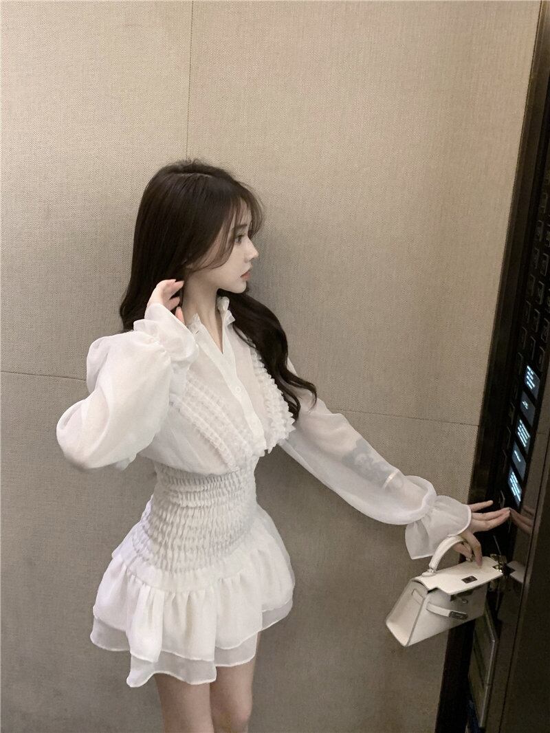 Chiffon dress women's summer 2022 new Sen Department gentle wind high-end French style waist thin white skirt ホワイト シフォン サマー 夏物 スカート nana34169478177 | modepoisson
