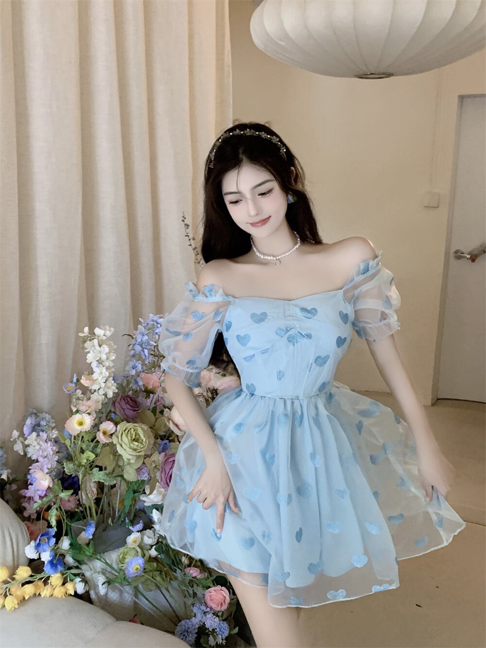 French first love milk sweet skirt women's summer temperament square neck mesh short sleeves thin love fluffy chic dress ショート 半袖 ハーフスリーブ 大人ガーリー スウィート キュート カジュアル ふわふわ サマー 夏物 メッシュ スカート スクウェア nana1646863825 | modepoisson