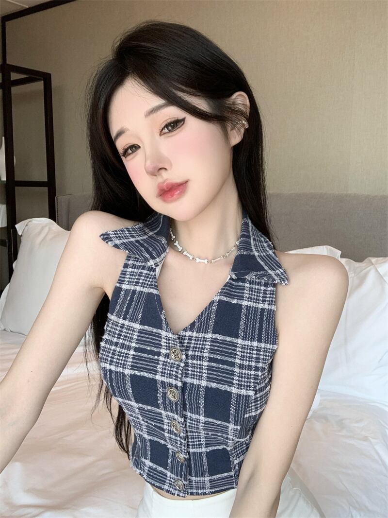 Hot short suspenders women's summer sexy pure desire to wear French sweet and spicy lapel halter vest with tops ショート 大人ガーリー スウィート キュート カジュアル サマー 夏物 ピュア nana52632791548 | modepoisson