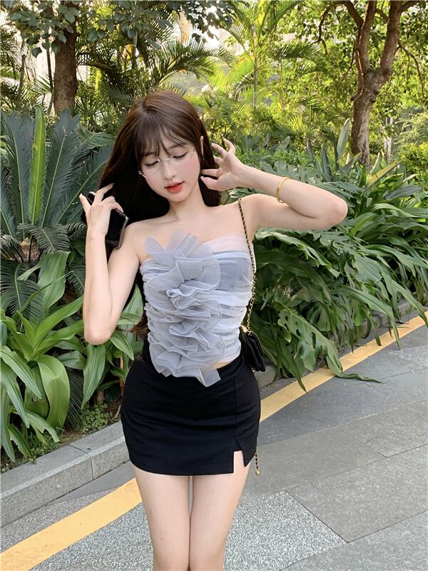 Mesh short tube top vest women's summer sexy French niche design temperament chic unique sweet and spicy top ショート 大人ガーリー スウィート キュート カジュアル サマー 夏物 メッシュ nana13704211700 | modepoisson