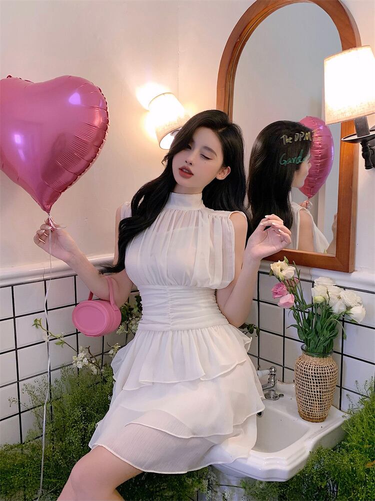 French ladies temperament chiffon high-end skirt summer sleeveless slim design niche white dress women's clothing ホワイト シフォン サマー 夏物 ノースリーブ スカート スリム nana41490044499 | modepoisson
