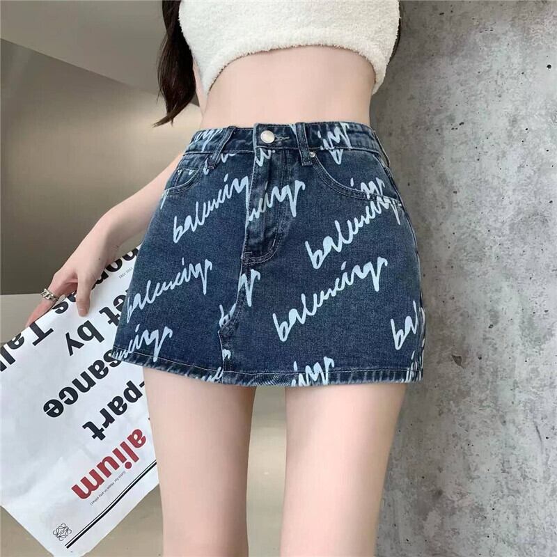 Jeans skirt women's 2022 summer new high waist and thin section design small a-line shorts ハイウェスト サマー 夏物 ショーツ ブルマー スカート Aライン nana6553647075 | modepoisson