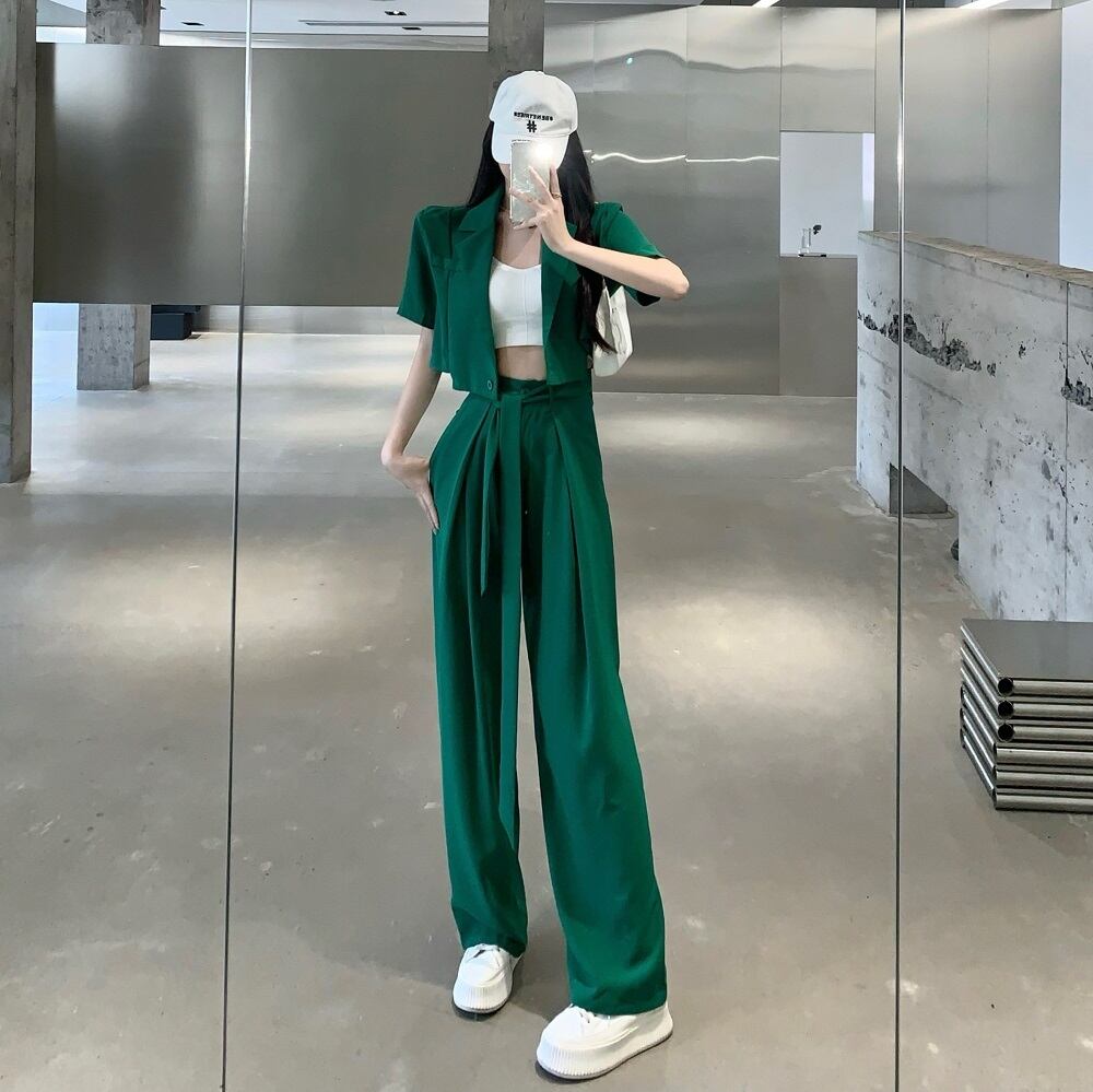 -quality two-piece suit women's summer 2022 new fashion short-sleeved suit jacket high-waisted straight casual pants カジュアル サマー 夏物 nana18129144580 | modepoisson