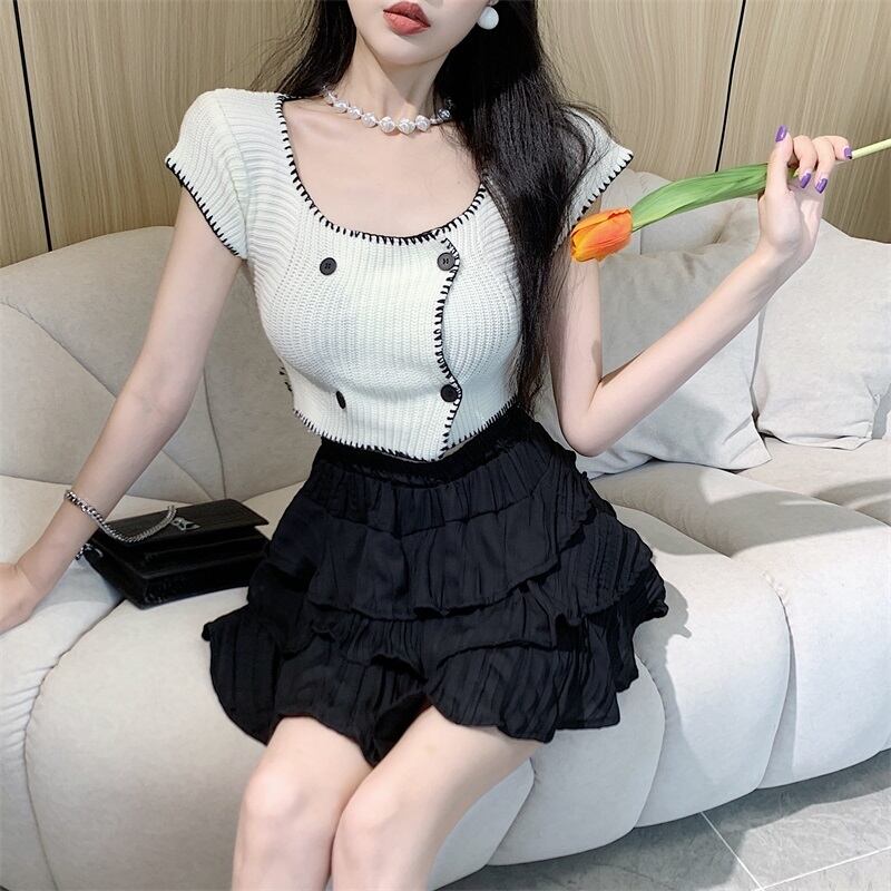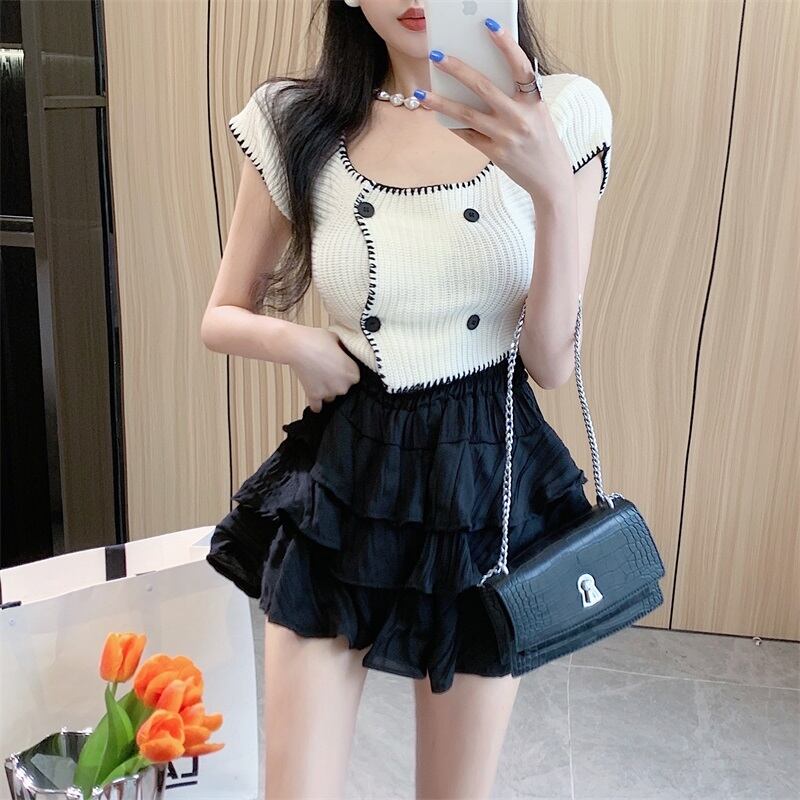 -end suit female 2022 summer new sweet little fragrance short-sleeved top half-length skirt two-piece suit 大人ガーリー スウィート キュート カジュアル サマー 夏物 スカート nana52022696762 | modepoisson