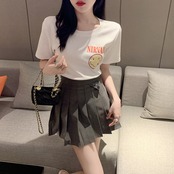 Hong Kong style skirt suit 2022 summer new fashion short-sleeved top high waist pleated skirt women's two-piece set ハイウェスト プリーツ サマー 夏物 スカート nana52250732933 | modepoisson