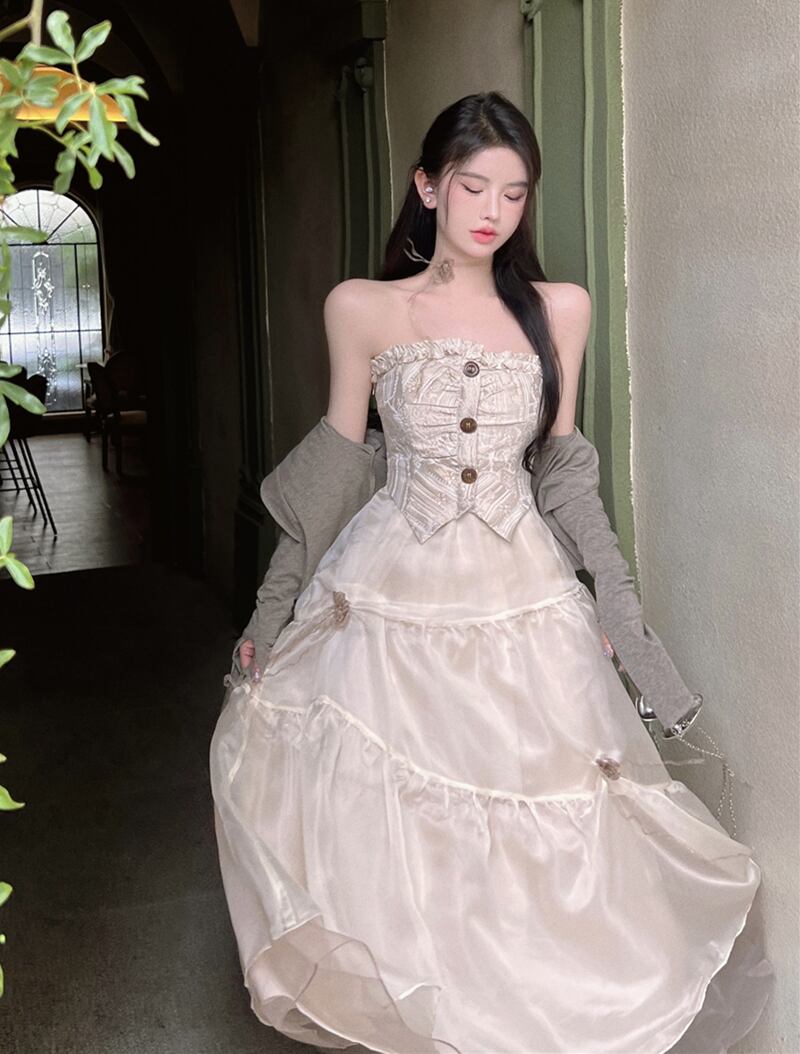 Palace style sexy French niche waist dress 2022 summer new sweet and spicy tube top temperament fairy skirt レース 大人ガーリー スウィート キュート カジュアル サマー 夏物 スカート nana91221939246 | modepoisson