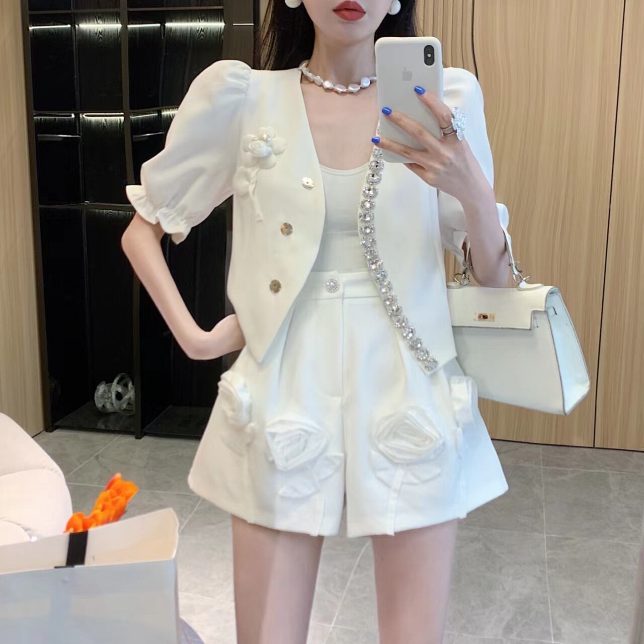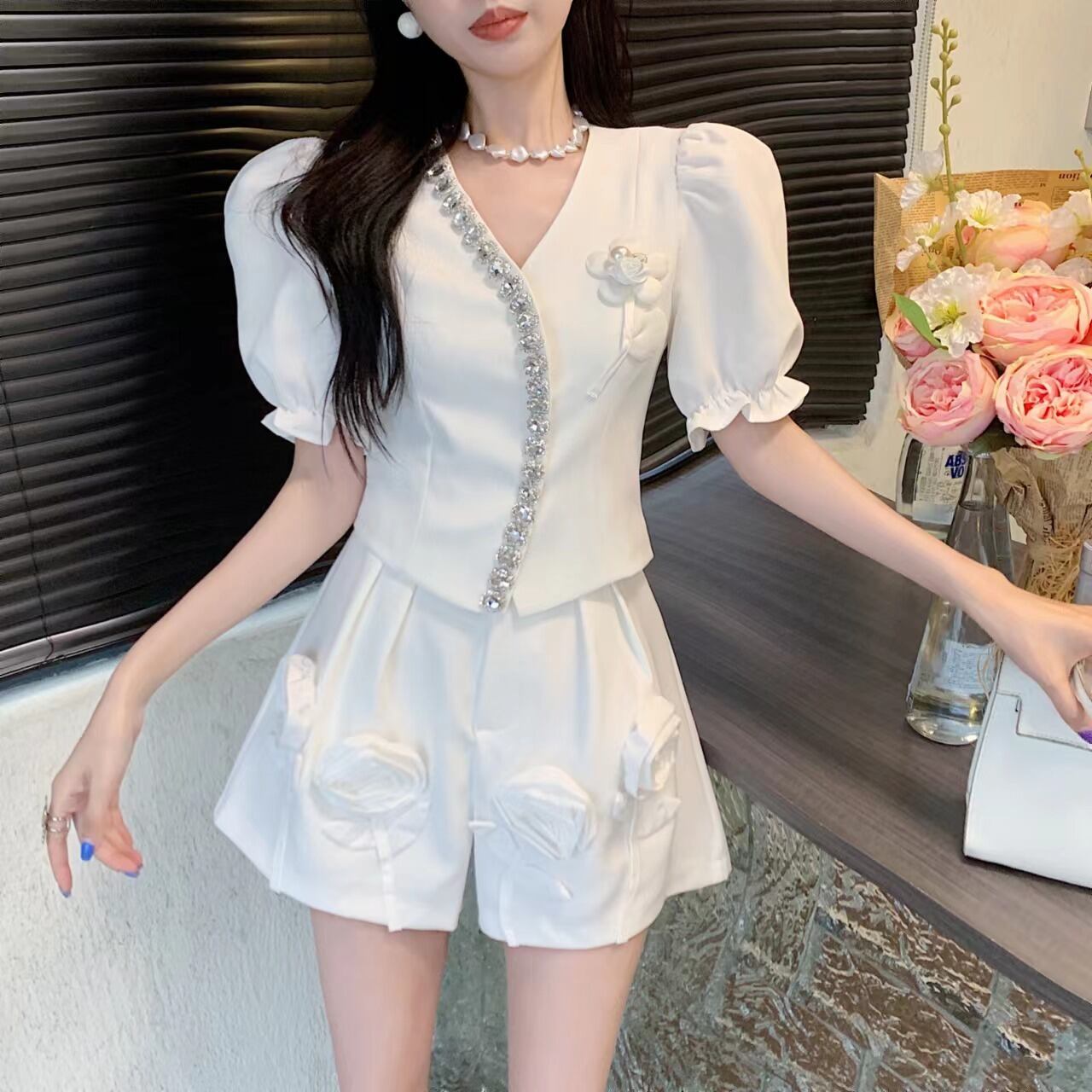 French temperament puff sleeve top high waist wide leg shorts fashion summer 2022 new two-piece suit women's clothing ハイウェスト サマー 夏物 ショーツ ブルマー ワイドレッグ ワイドパンツ nana98985806413 | modepoisson