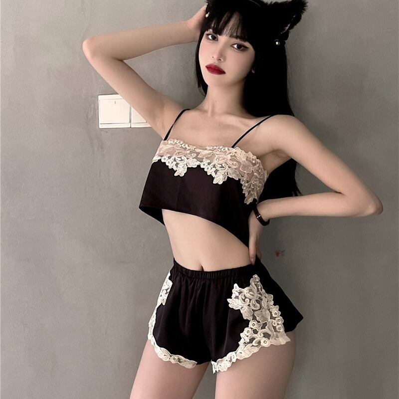 2022 summer new sexy pajamas women's pure desire lace suspenders nightdress shorts home service two-piece suit レース サマー 夏物 ショーツ ブルマー ピュア nana53096769599 | modepoisson